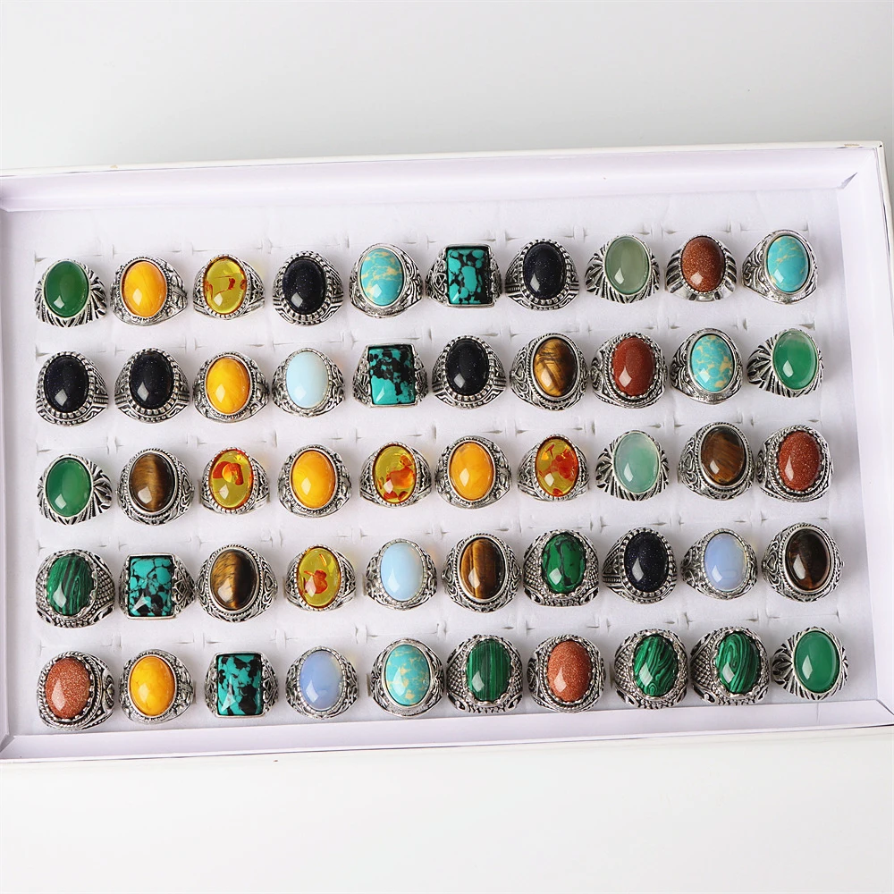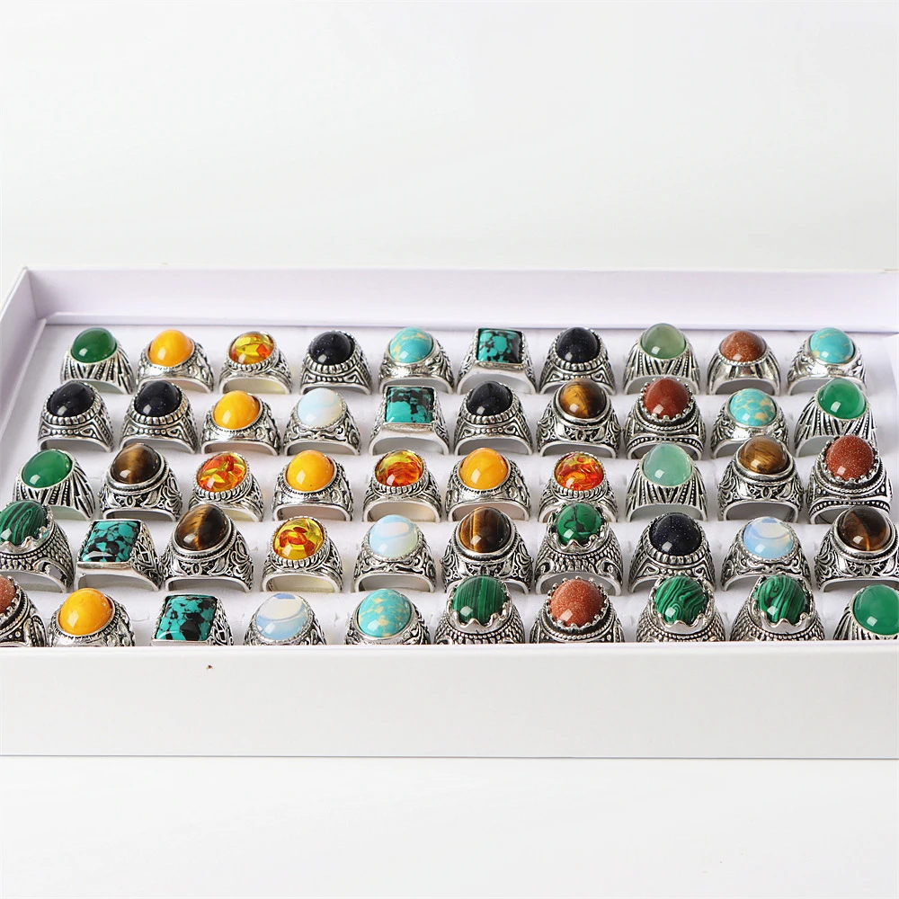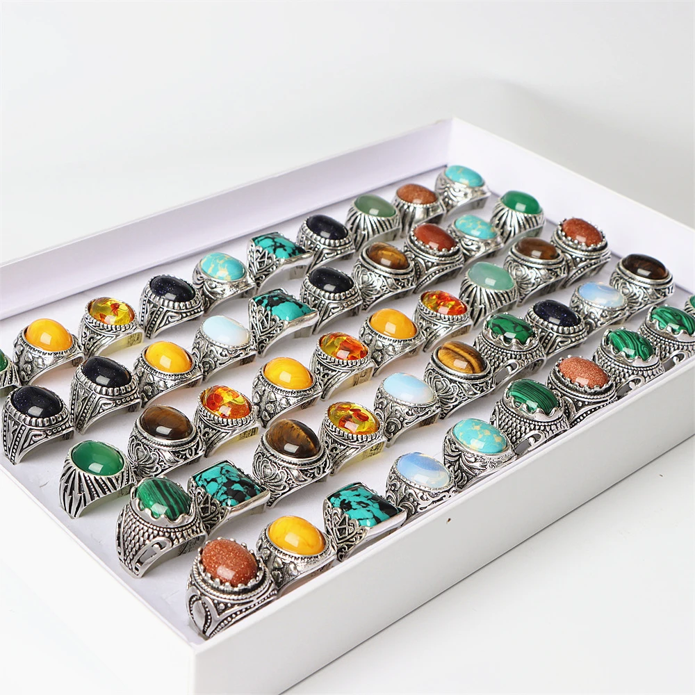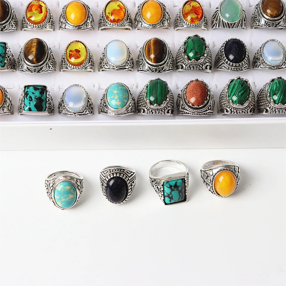 Винтажные кольца 5 шт.лот из натурального камня, агата, малахита, тигра, антикварные серебряные кольца для женщин и мужчин, модные украшения, подарки для вечеринок