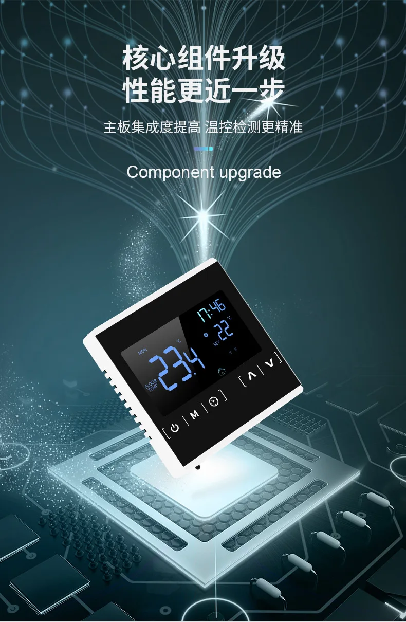 1. Функция памятиЗапомните все настройки после внезапного отключения питания. Когда питание включено снова, вам не нужно сбросить его.2. Программируемая функцияШестиступенчатая программируемая Настройка контроля температуры, программируемый 5 + 2 или 6 + 1.3. Вставные и внешние два датчика. Включает 3 м кабель внешнего датчика.4. Функция блокировки ребенкаБлокировка термостата во избежание неправильной работы детьми.5. Подходит для различных систем электрического отопленияТермостат подходит для электрических нагревательных устройств, таких как нагревательные кабели, нагревательные колодки и нагревательные пленки.6. Сенсорный ЖК-экран с черной подсветкой.7. Функция антифриза:В режиме выключения термостат автоматически включит нагревательное устройство при температуре ниже 5с градусов, а при комнатной температуре выше 7с градусов, термостат автоматически выключает нагревательное устройство. (Этот параметр можно отключить в дополнительных настройках).8. Поддержка коммутационного дисплея по Фаренгейту (только модели WiFi).Посылка включает в себя: 1 термостат1X3 метра внешний датчик2 винтаРуководство пользователя на английском языке-1 шт.