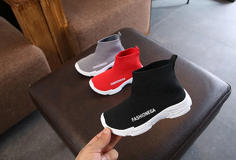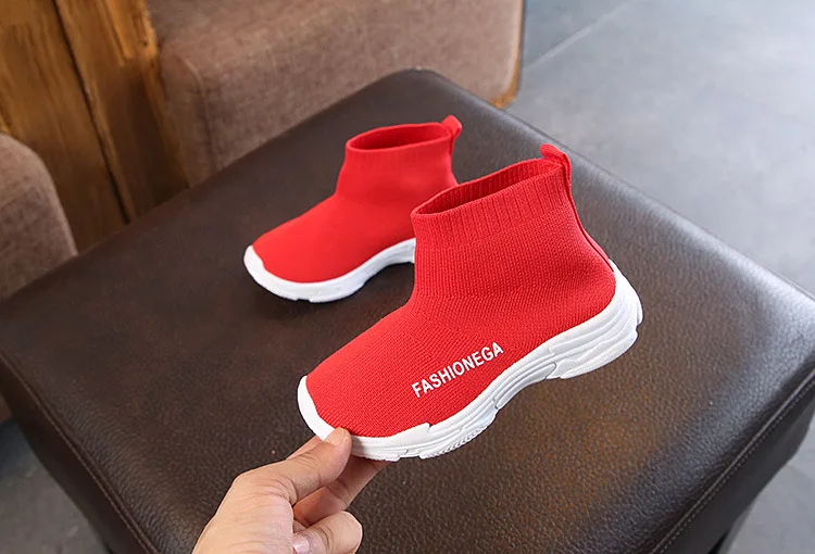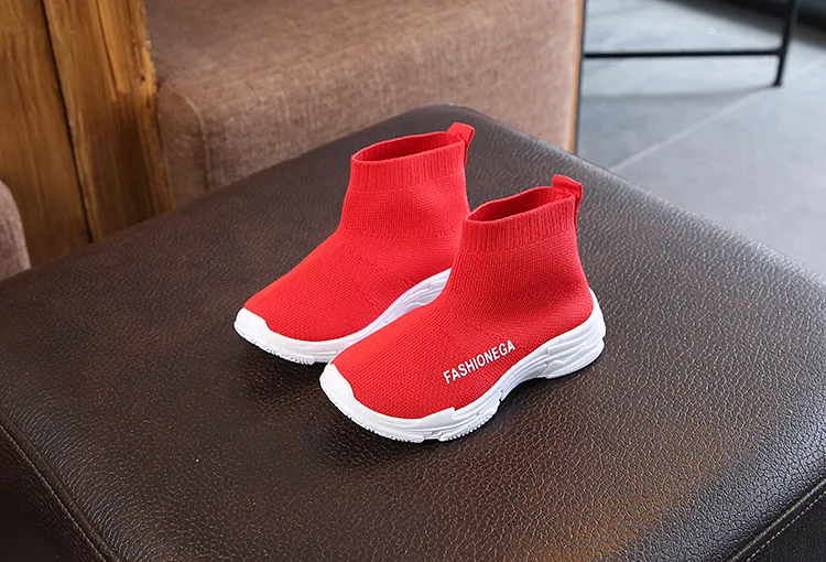 Детские носки, обувь на весну и осень, брендовые Детские кроссовки, повседневная спортивная обувь для мальчиков и девочек, вязаные однотонные туфли, черные, красные, на плоской подошве