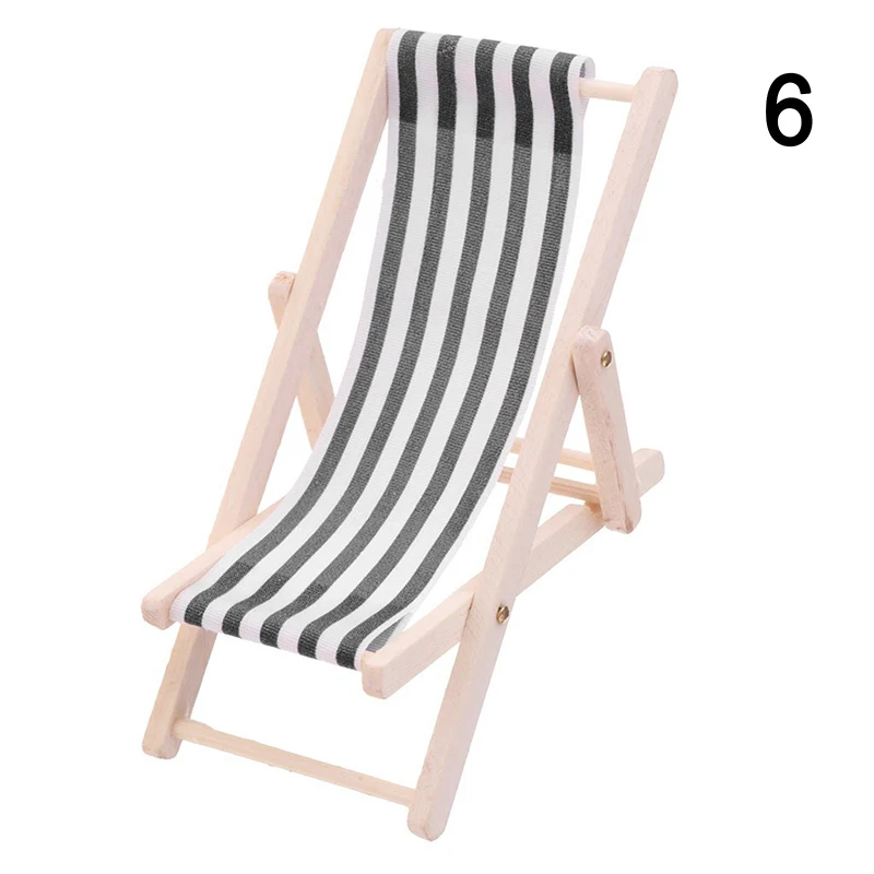 Мебель для кукольного домика 1:12, мини складное Полосатое деревянное пляжное кресло, кресло для загара, шезлонг, кресло для кукол, игрушка