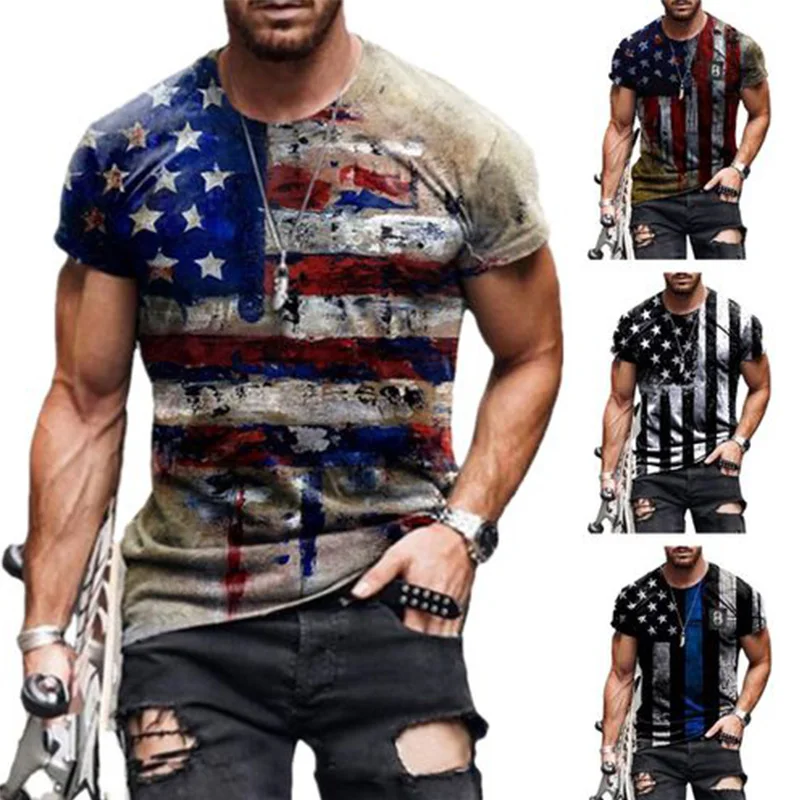Повседневная модная мужская футболка с принтом американского флага, свободная уличная одежда большого размера с круглым вырезом, крутые футболки, мужские топы, футболки