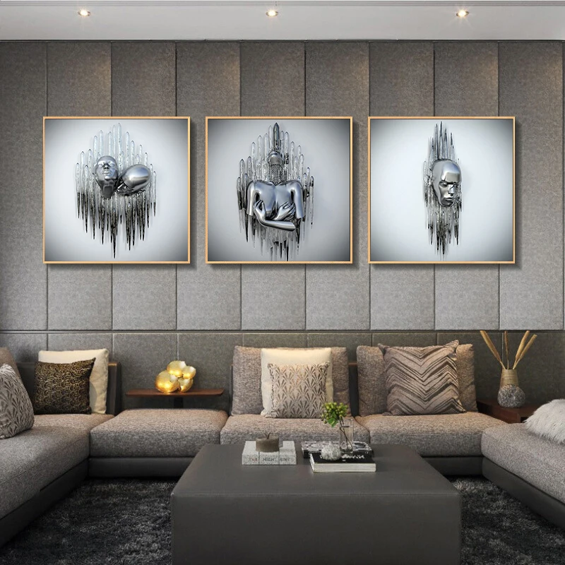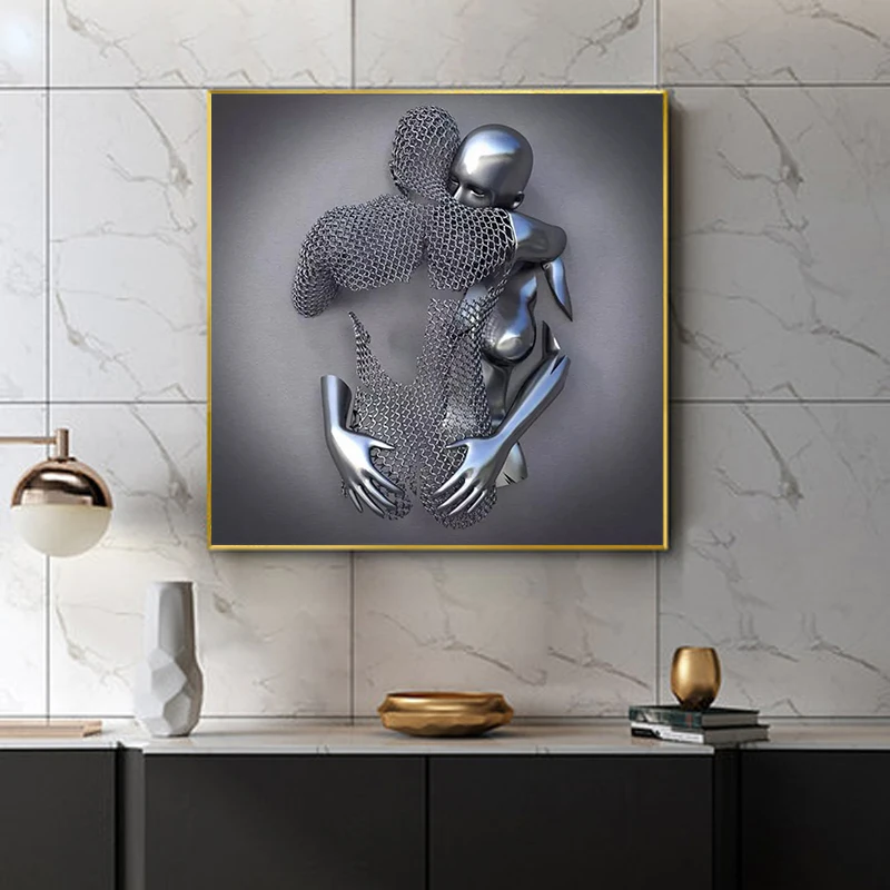 Металлическая фигурка, статуя, искусство, холст, живопись, романтические абстрактные постеры и принты, настенные картины, Современная гостиная, украшение для дома