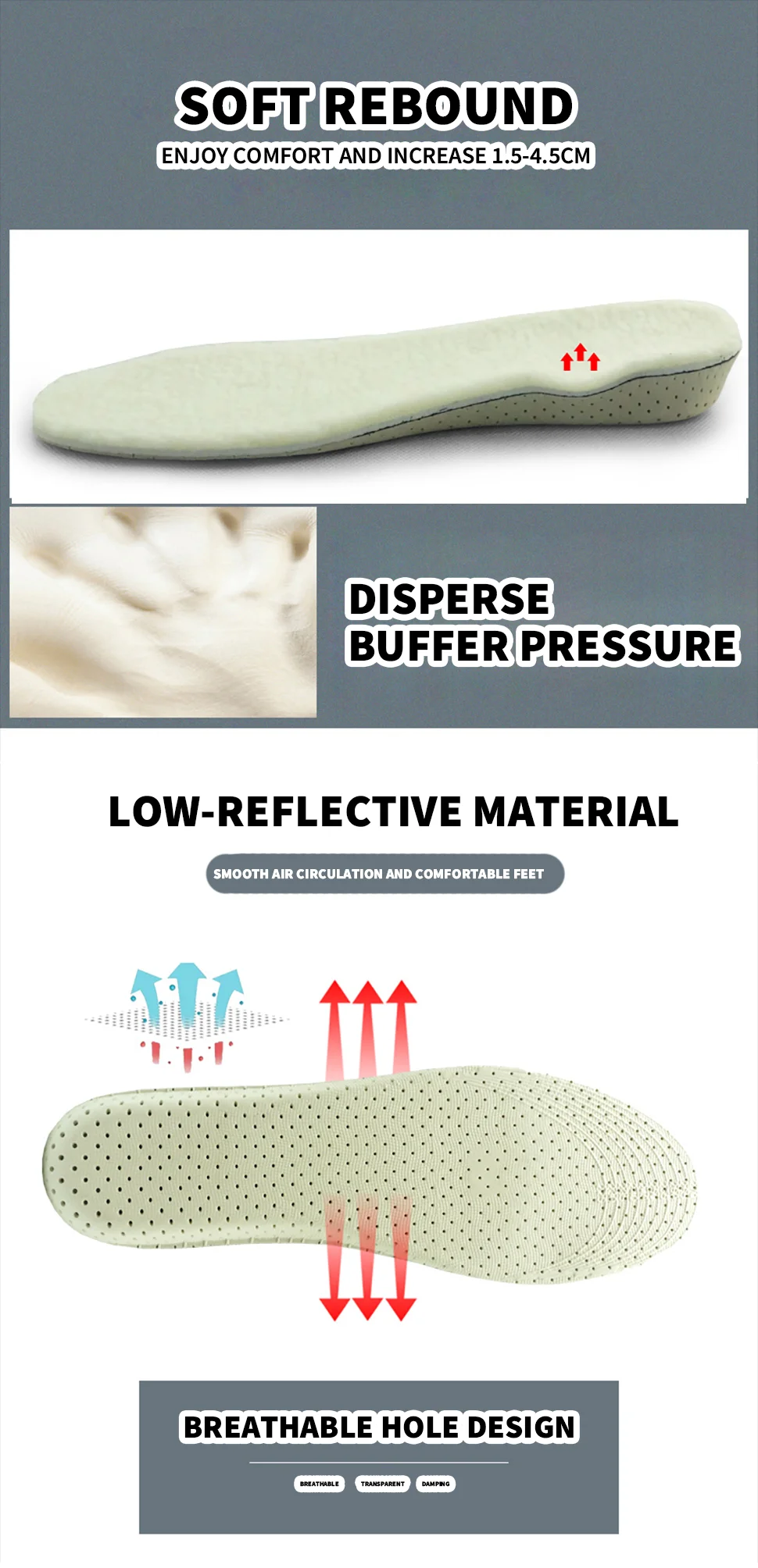 Стельки с увеличением высоты, прочные дышащие вставки из пены с эффектом памяти, подъемные стельки для обуви, для мужчин и женщин