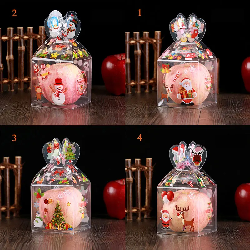 Прозрачная коробка из ПВХ для конфет, рождественские украшения, Подарочная коробка, упаковка в виде Санта-Клауса, снеговика, оленя, конфет, яблока, креативные коробки