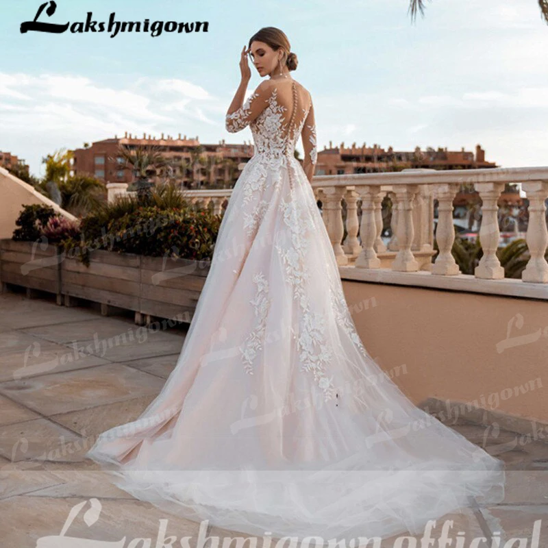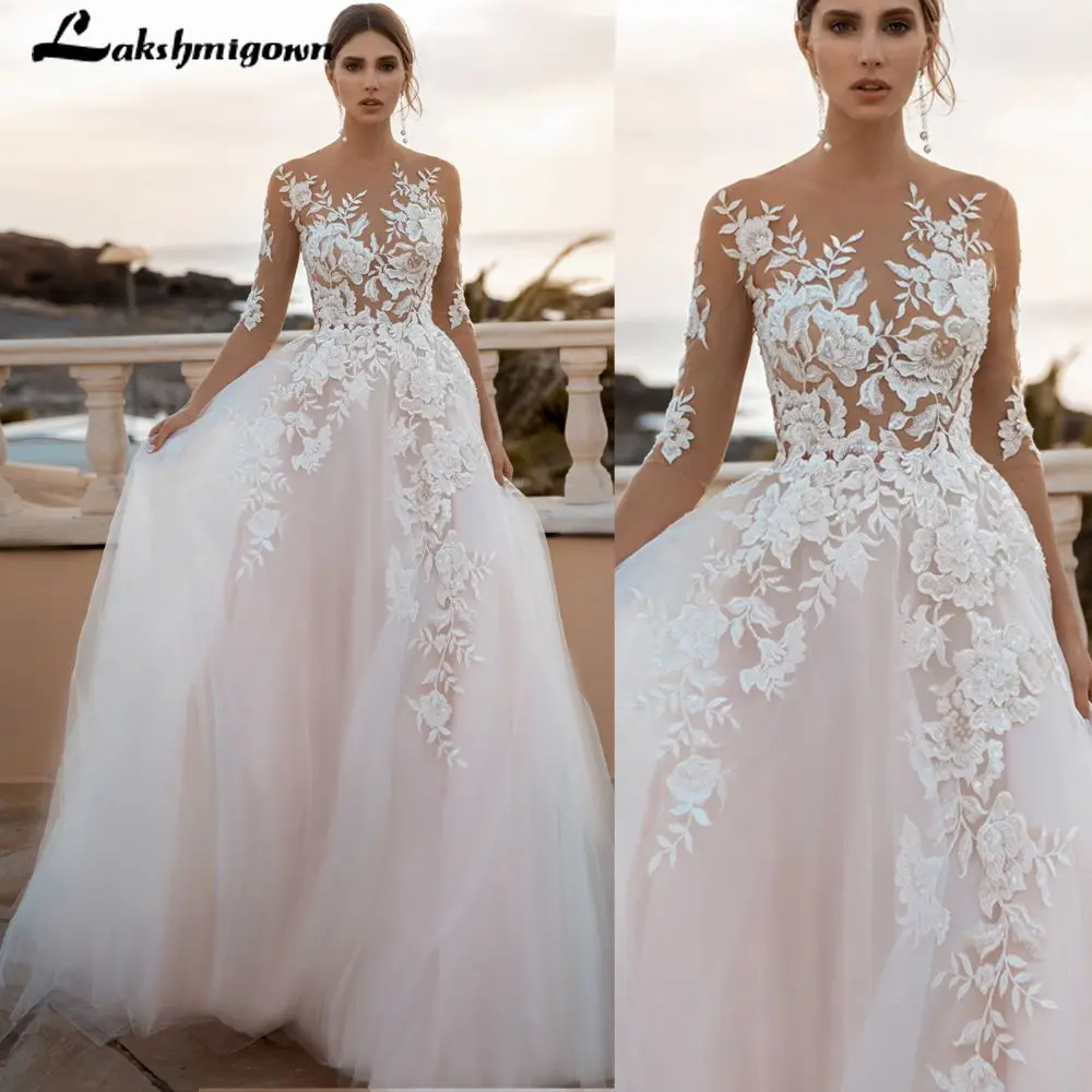 Женское свадебное платье с цветочной аппликацией, розовое платье с круглым вырезом и открытой спиной, трапециевидного силуэта, тюлевые наряды для тренировок, 2022