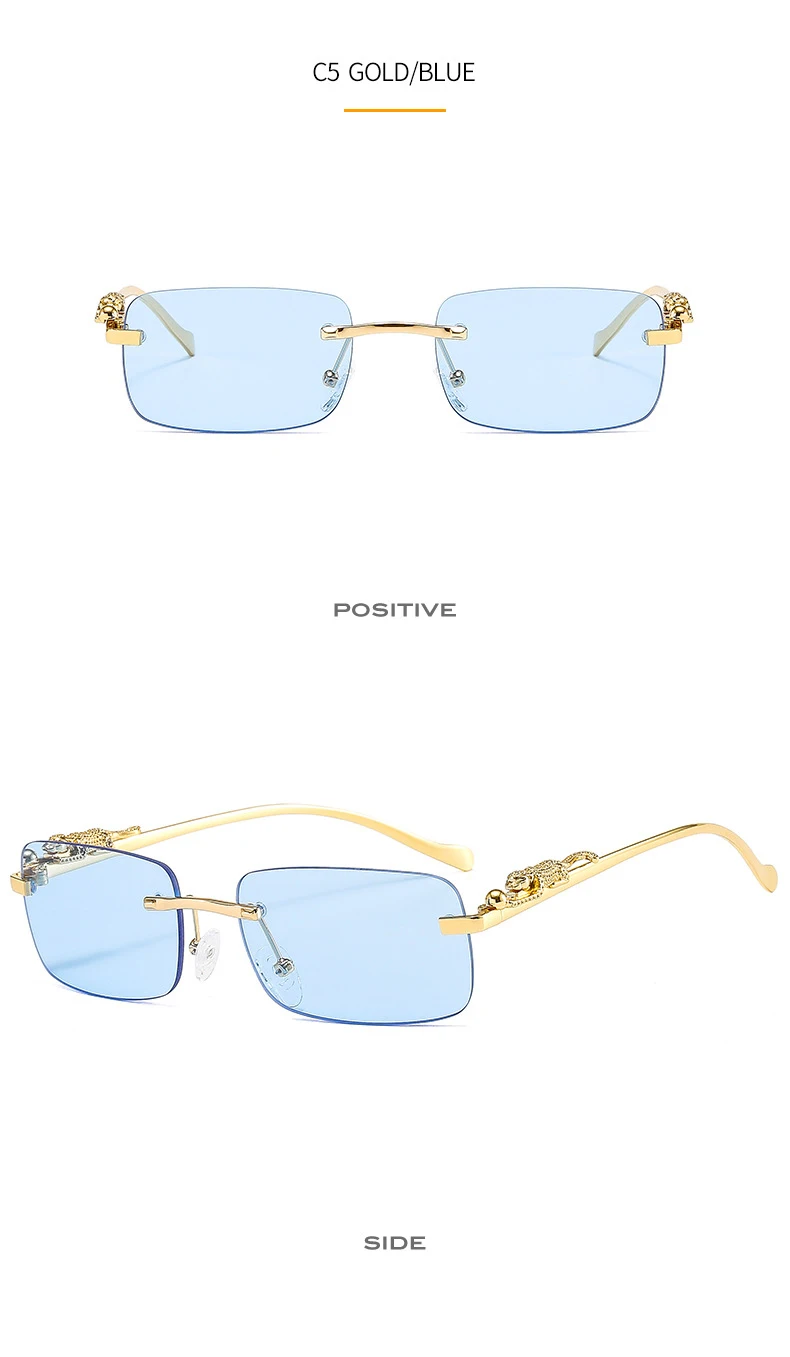 Солнцезащитные очки Квадратные для мужчин и женщин UV400, зеркальные аксессуары в винтажном стиле, с украшением в виде гепарда, с прозрачными синими линзами