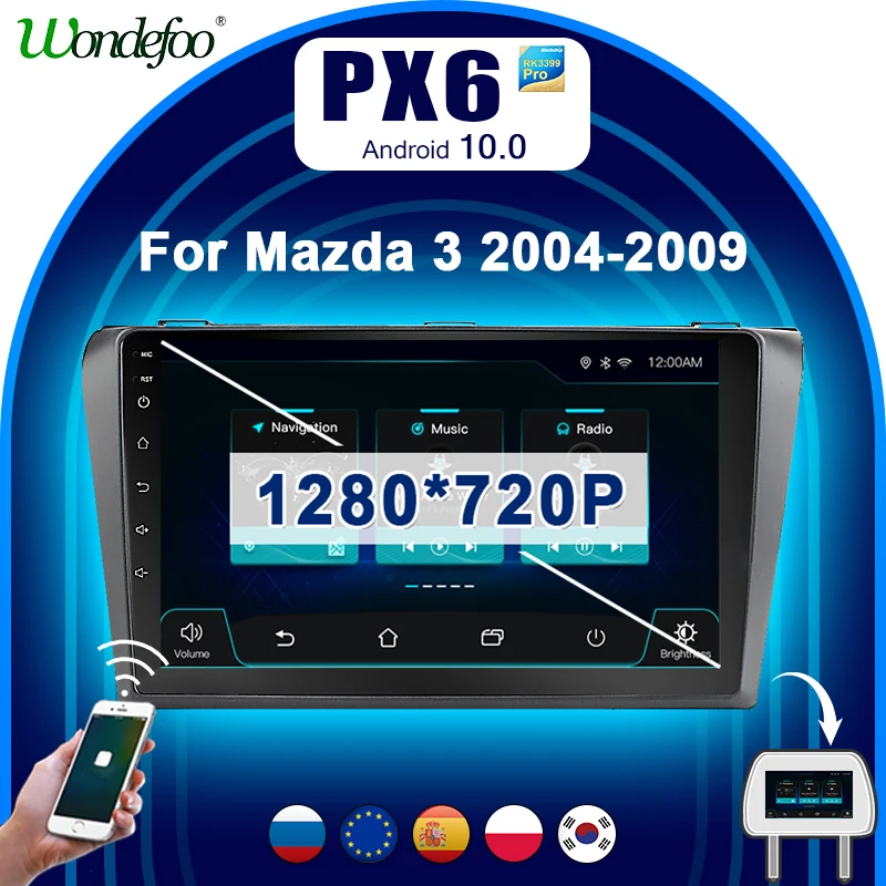 Автомагнитола Wondefoo PX6, 2 din, Android 10, для Mazda 3 2004-2009, умная мультимедийная система Carplay, мультимедийная навигация, 2 din