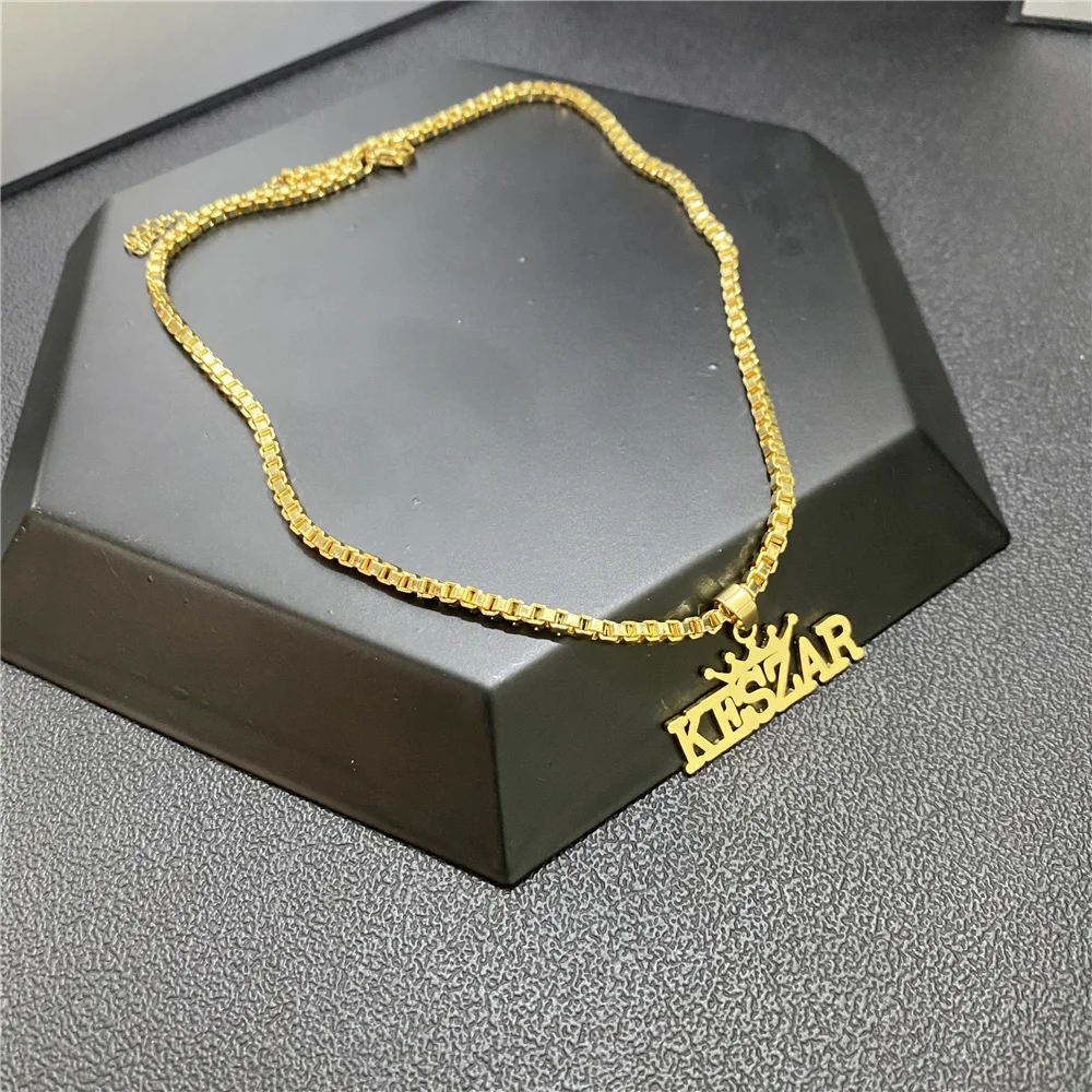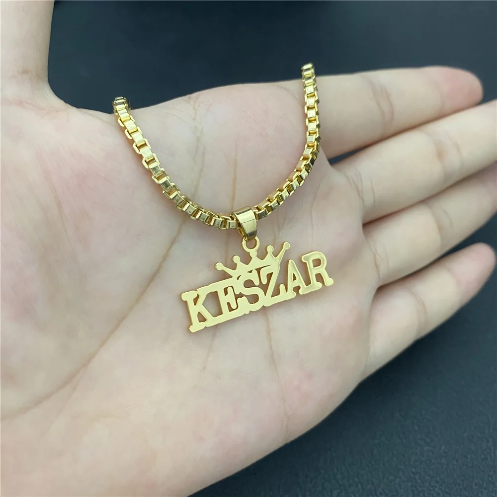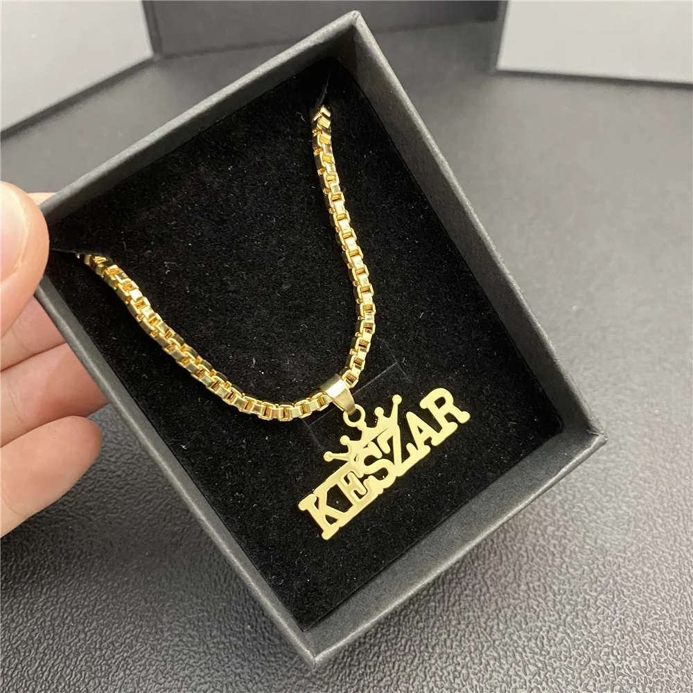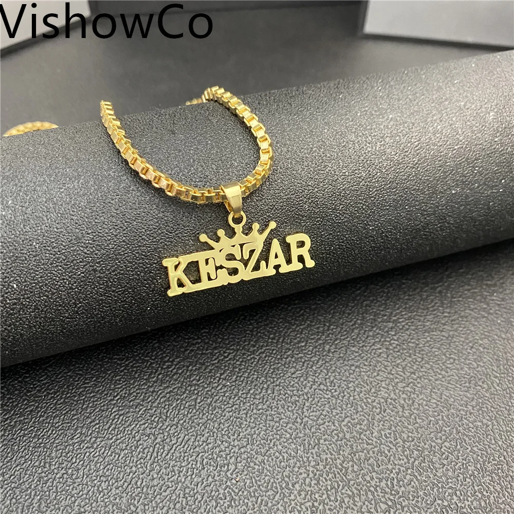 Ожерелье с именем VishowCo на заказ, цепочка из нержавеющей стали с именем в коробке, ожерелье с кулоном в виде короны, ювелирные изделия для мужчин и женщин, подарок