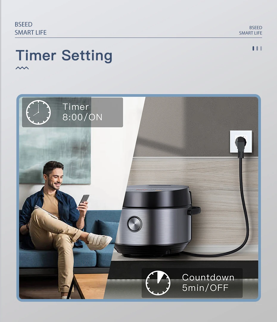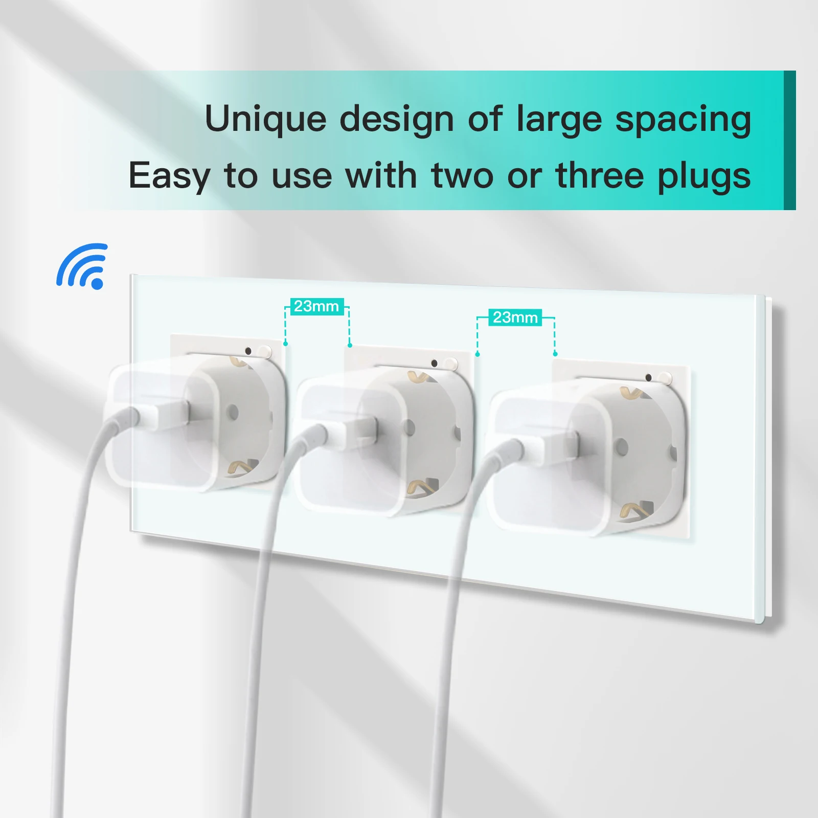 BSEED WiFi умная штепсельная вилка ЕС, розетка, монитор питания, Функция синхронизации, умная жизнь, приложение Tuya, пульт дистанционного управления, стеклянная панель, Синяя подсветка
