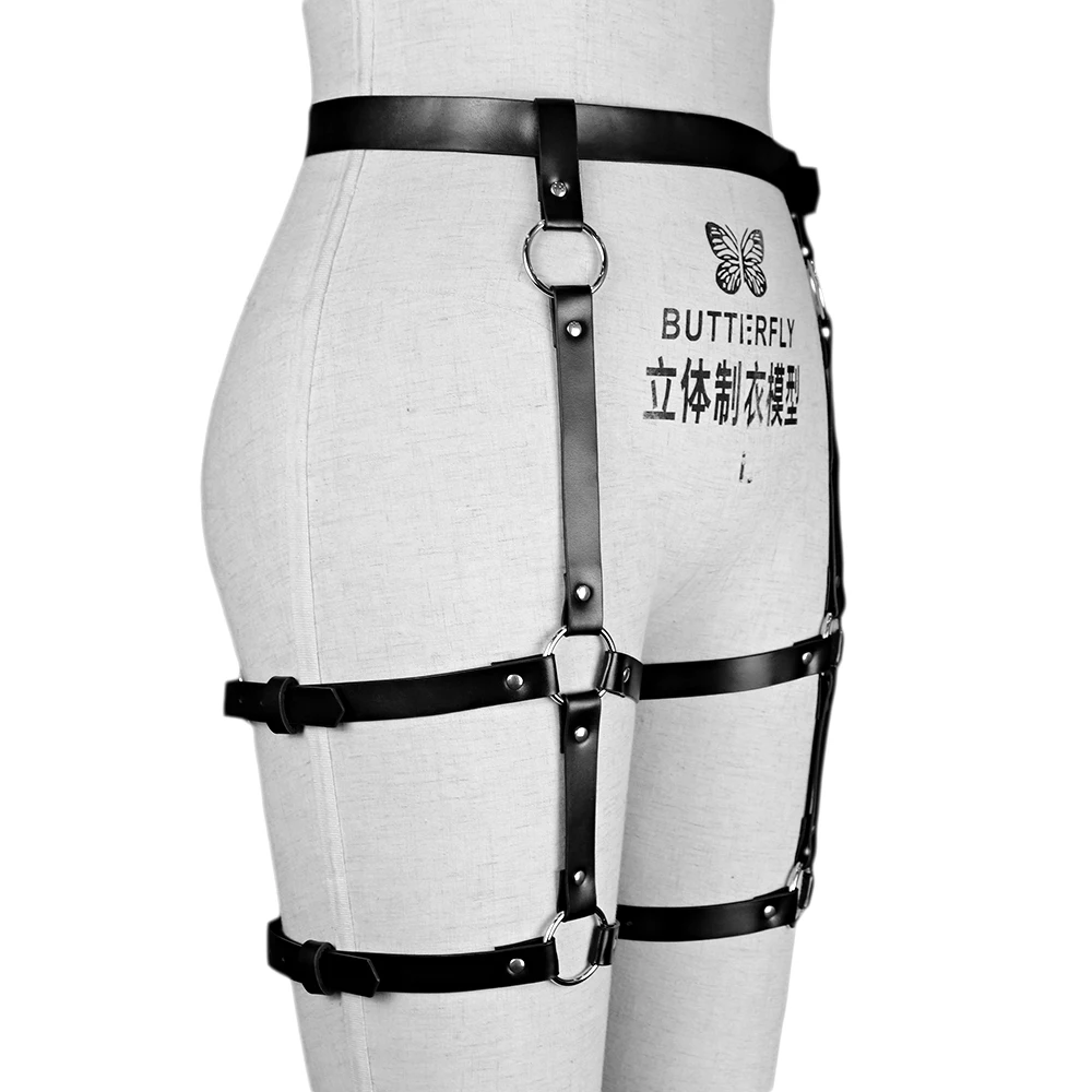 Регулируемые плечевые ремни, женское нижнее белье, черный готический кожаный корсет, сексуальный бондажный бюстгальтер, пояс для чулок для ног, ремень для взрослых