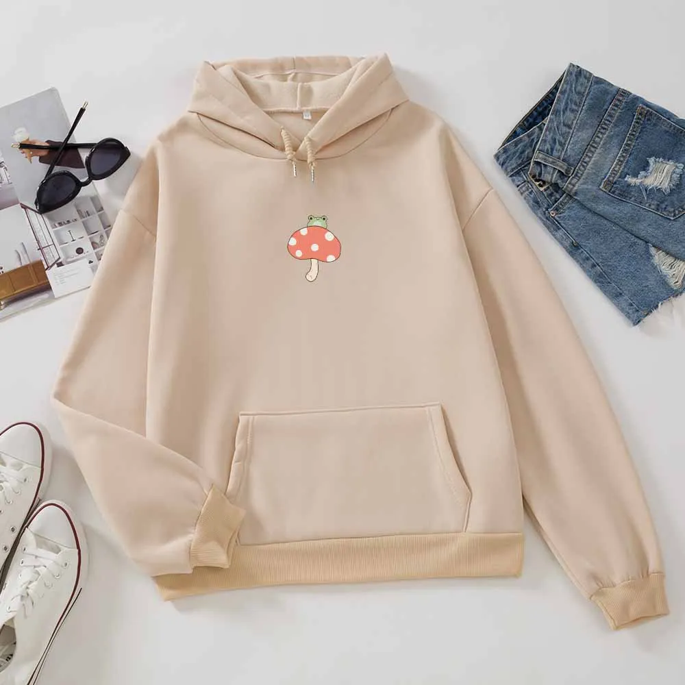 Женские толстовки в стиле Харадзюку с грибами; Готическая Эстетическая одежда; Сезон весна-осень; Kawaii; Толстовка с графической лягушкой; Женская винтажная толстовка; Sudadera Mujer Стиль: Повседневный,Вес: 450 г