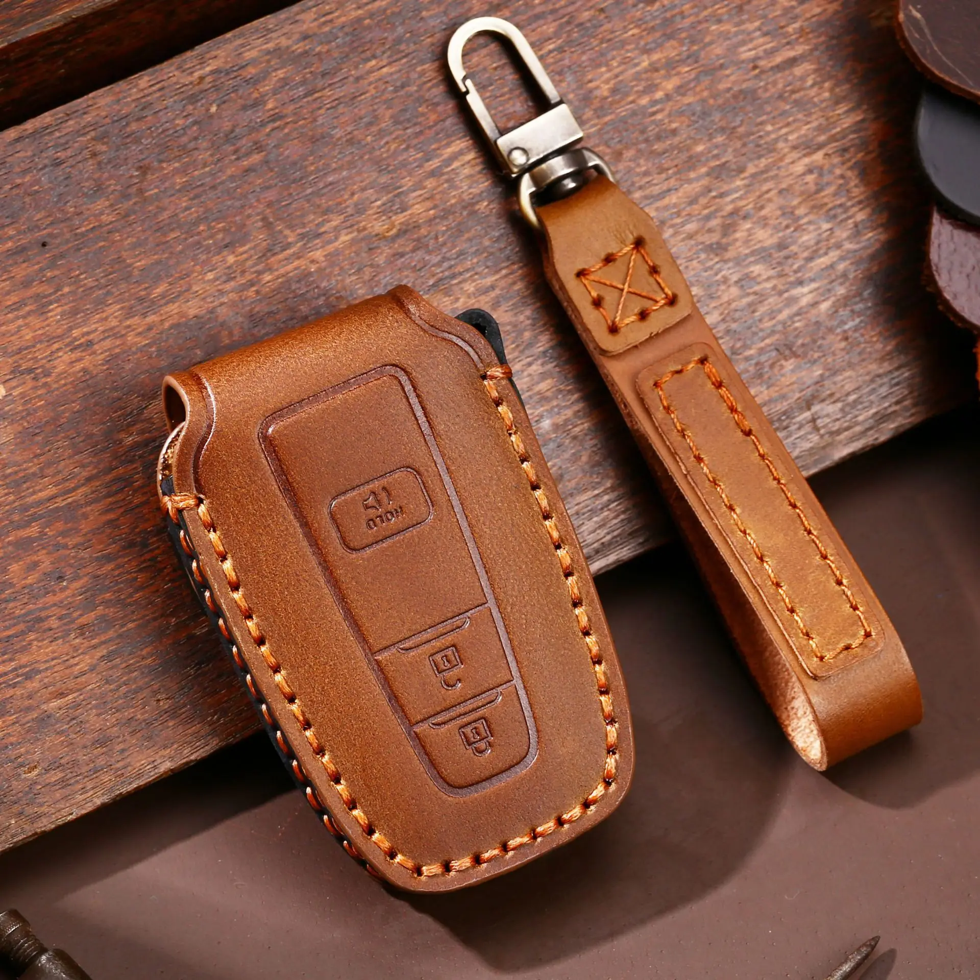 Чехол для ключей из натуральной кожи для Toyota Camry CHR Corolla RAV4 Avalon Land Cruiser Prado Prius чехол дистанционного брелока 2 3 4 Button 2018 20