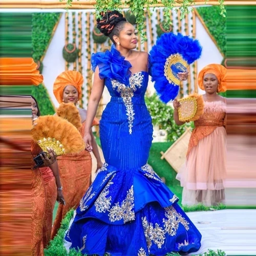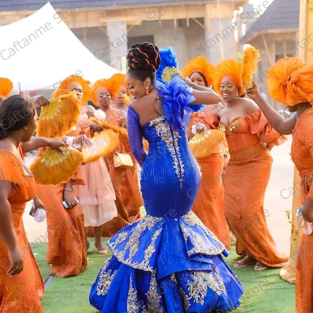 Элегантные африканские королевские синие платья для выпускного вечера 2021 Русалка марокканские аппликации блестки Южная Африка вечернее платье для женщин большого размера