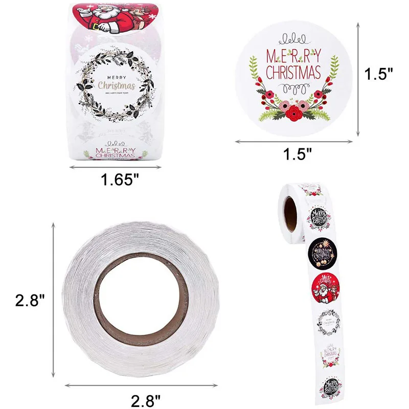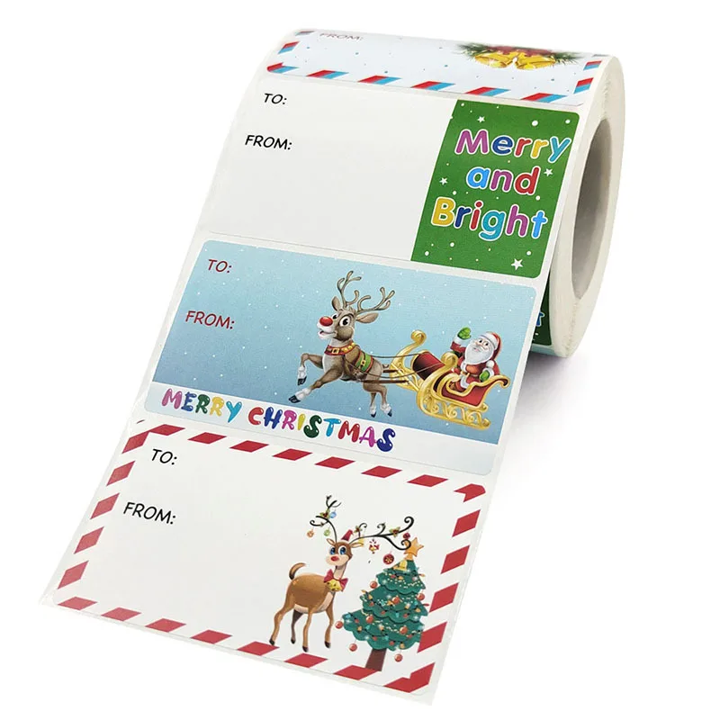 1 рулон (100-500 шт.) Стикеры с надписью "Merry Christmas", стикеры с изображением снеговика и деревьев, декоративные стикеры s, стикеры для оформления упаковки подарков, этикетка