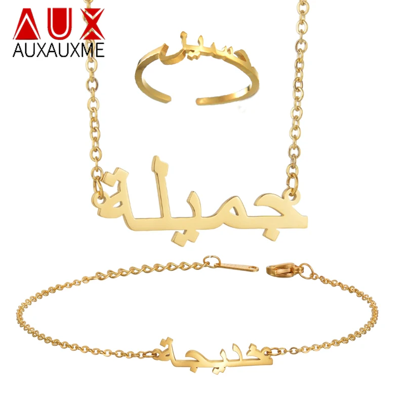 Auxauxme, на заказ, ювелирный набор с арабским именем, ожерелье из нержавеющей стали, браслет, кольцо, браслет, свадебное ювелирное изделие, любимая девушка, ювелирные изделия