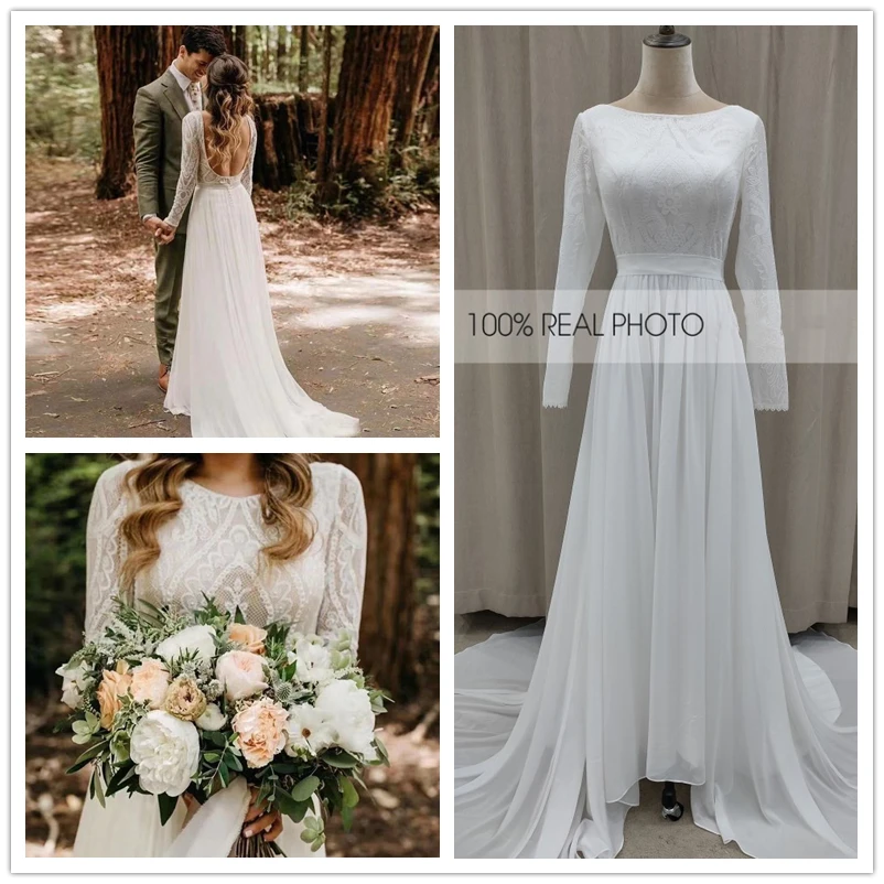 Роскошное богемное шикарное кружевное свадебное платье с длинным рукавом богемные Свадебные платья пикантные пляжные шифоновые Свадебные платья с открытой спиной