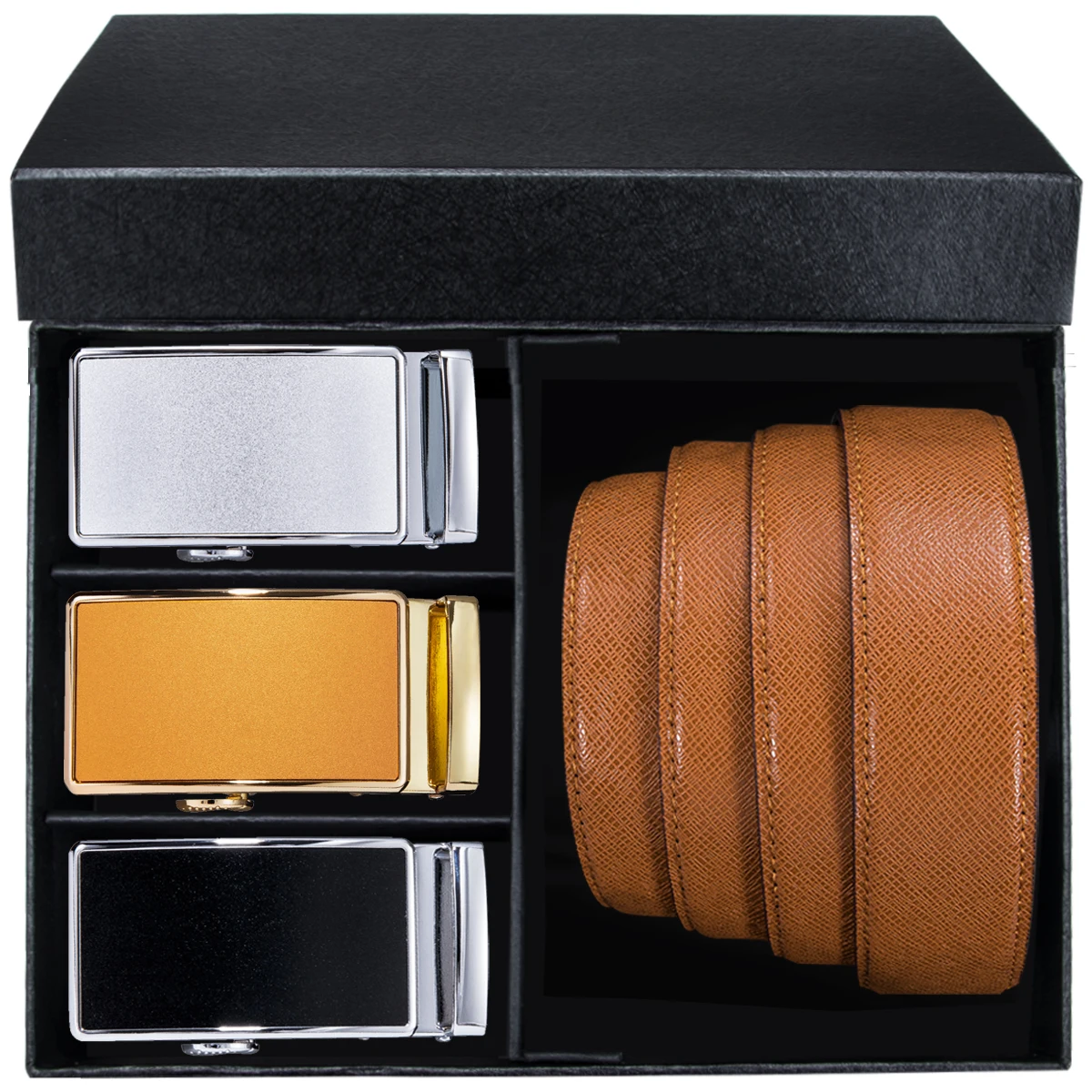Роскошный набор мужских ремней в коробке, Коричневый мужской ремень...