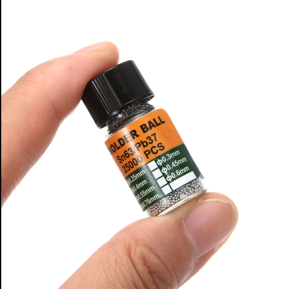 Шарики для реболлинга BGA, 1 бутылка, свинцовые шарики 0,2-0,65 мм для пайки микросхем, оловянный материал Sn63Pb37, инструменты для ремонта