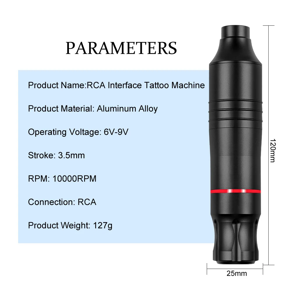 Бренд: ThunderlordТип: тату-машинкаМатериал корпуса: алюминийЦвет ручки: черный, красный,Скорость: Макс. 10000 об/минВход: макс. 12 ВХод поршня: 3,5 ммДвигатель: 4,5 Вт Мощный двигательДлина HP: 120 ммHP Dia: Макс. 28Игла: Универсальная игла для картриджаПодключение: кабель RCAFuntion: как для вкладышей и шейдеровИсточник питания:Товар: перезаряжаемый беспроводной источник питания для татуСтандарт: RCA ConnectВремя зарядки: 5 часовВремя работы: 4-6 часовВходное напряжение: DC5VМетод использования: НажмитеЗарядный разъем рекомендуется: 5V-1A (не входит в комплект), не используйте зарядное устройство более 5 В (поврежденная машина на свой собственный риск.)Аккумулятор: 1500 мАч литиевая батареяРазмер: 7.9x3x3.3cmВес: 70 гИнструкции(1) Полная зарядка для первого использования(2) Нажмите пятисторонний переключатель посередине: Нажмите и удерживайте кнопку ВКЛ./ВЫКЛ., нажмите кнопку «пауза»/«СТАРТ»(3) в верхней и нижней части пятипозиционный переключатель представляют собой напряжение плюс и минус (0,2 V для регулировки напряжения)(4) нажмите вправо, чтобы отобразить процент мощности, и нажмите влево, чтобы вернуть интерфейс напряжения(5) Если мощность менее 19%, индикатор зарядки будет мигать: Подключите зарядное устройство и лампу остаться на(6)100% полная мощность, полный светодиодный светильникПримечание: Не используйте зарядное устройство более 5 В (повреждает машину на свой собственный риск.)