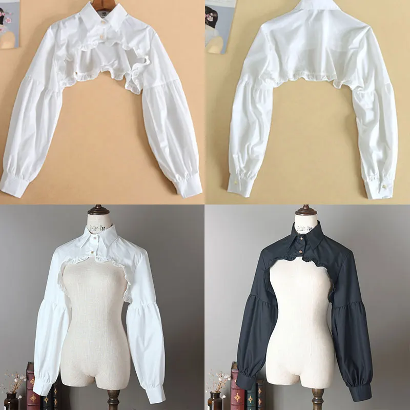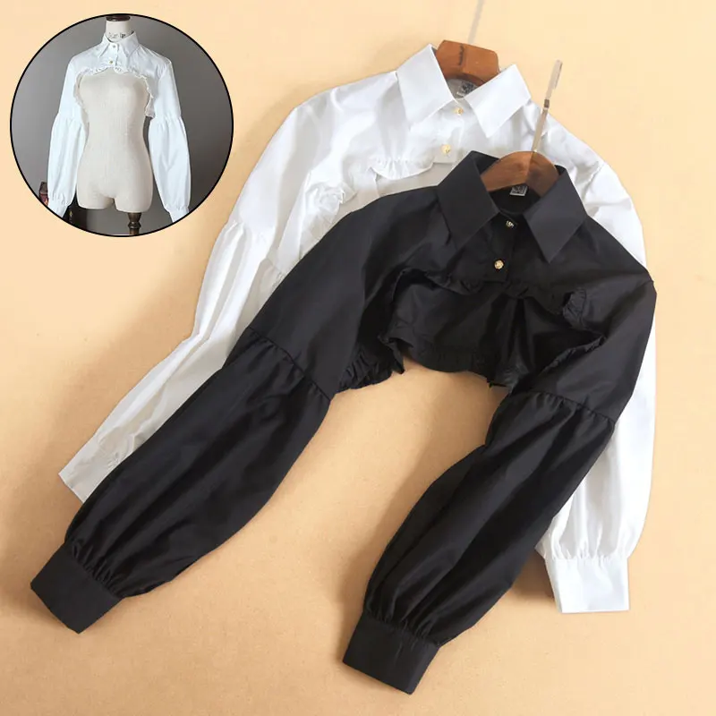 Женская блузка с длинным рукавом и ложным воротником, полуоборками