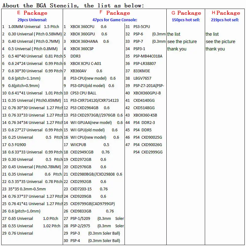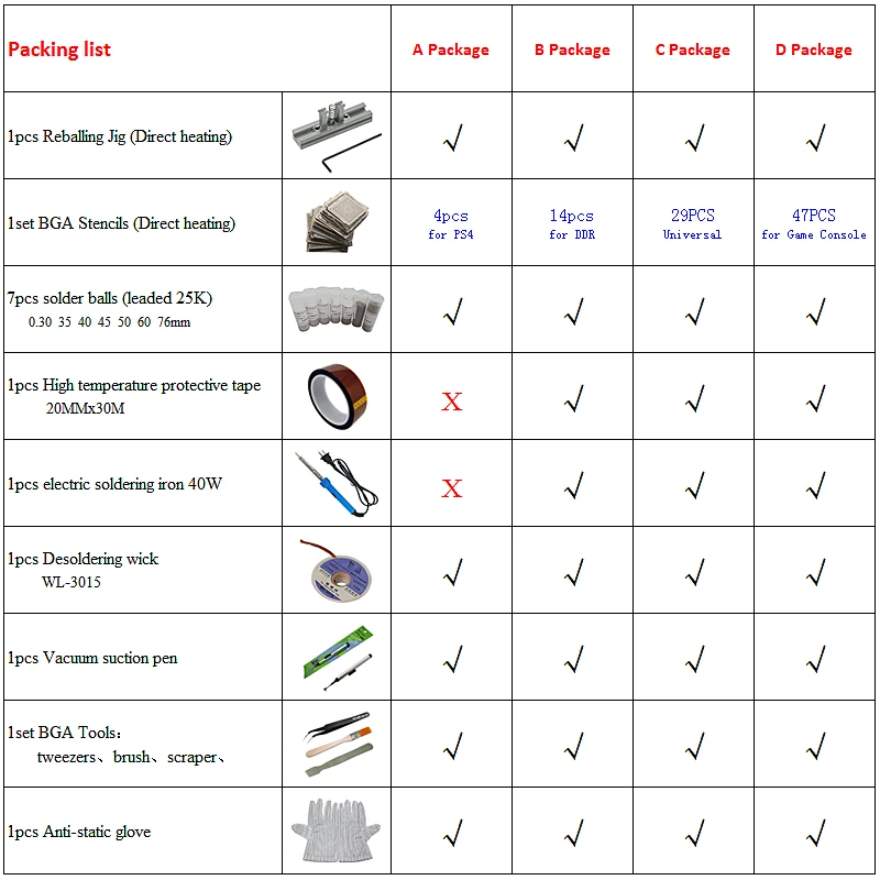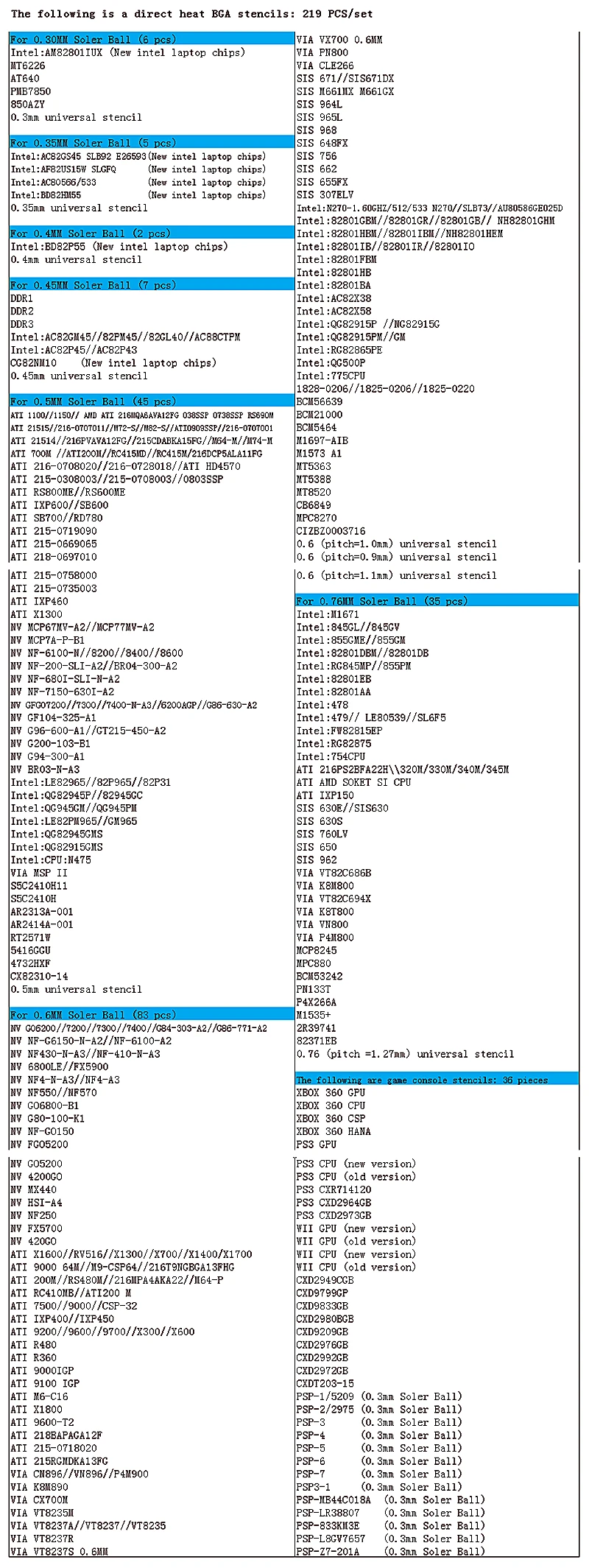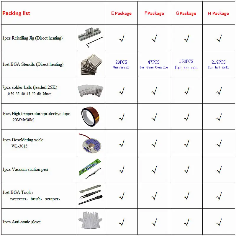 Мы можем поставить несколько BGA переработки/пайки материалов, как, например, рерабочая станция, трафареты для шариков припоя, паяльная паста и так далее, если вам нужна какая-либо из них или других, пожалуйста, не стесняйтесь связаться с нами.
