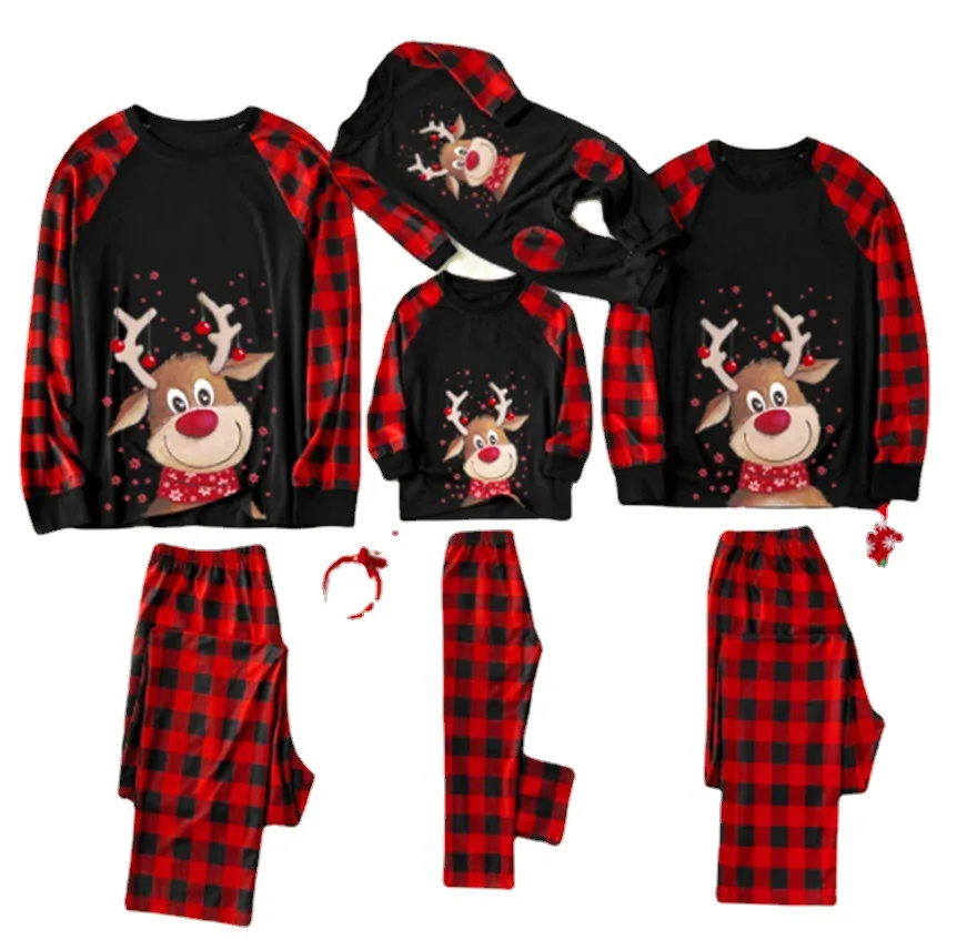 Пижама с рождественским оленем, комплект, клетчатая, Одинаковая оде...