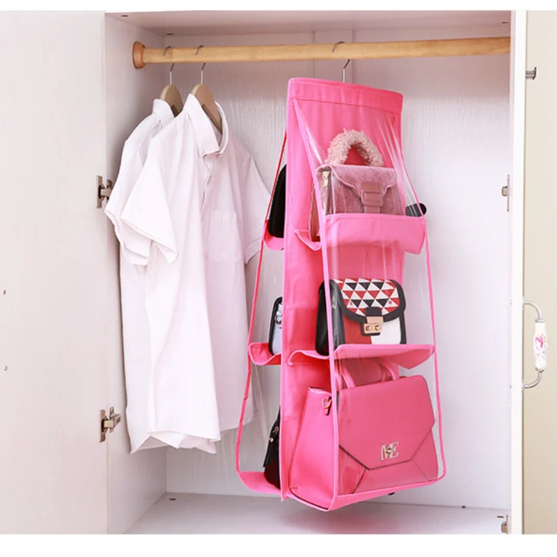 Органайзер для сумок с 6 карманами, прозрачная подвесная Сумка для гардероба, шкафа, двери, для хранения, прозрачная сумочка для обуви, с сумкой-вешалка
