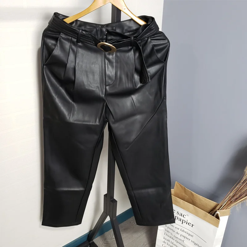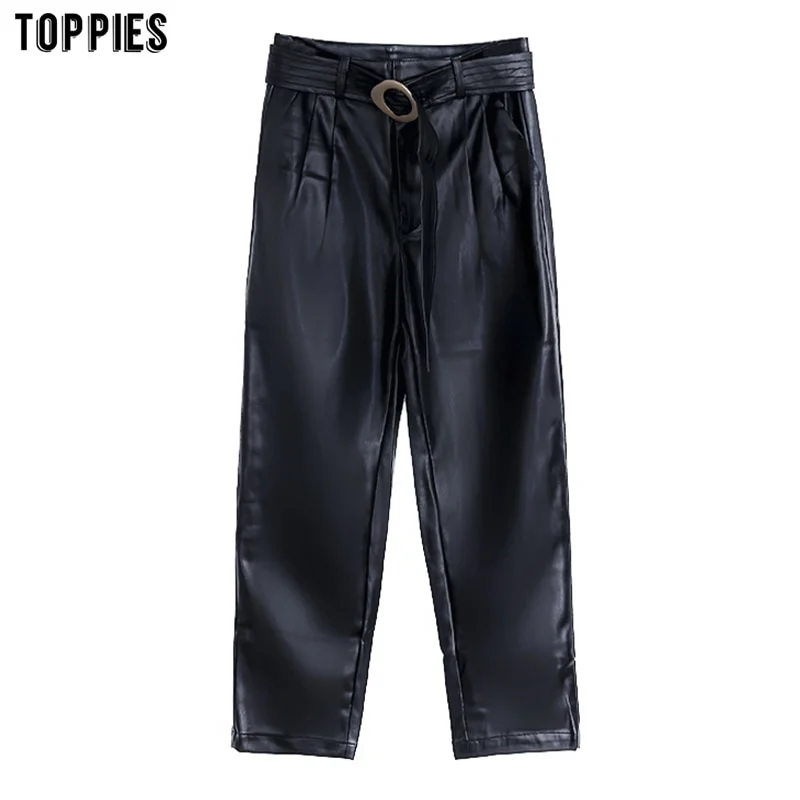 Брюки Toppies женские из экокожи, прямые штаны с высокой талией и поясом, черные, Осень-зима 2021
