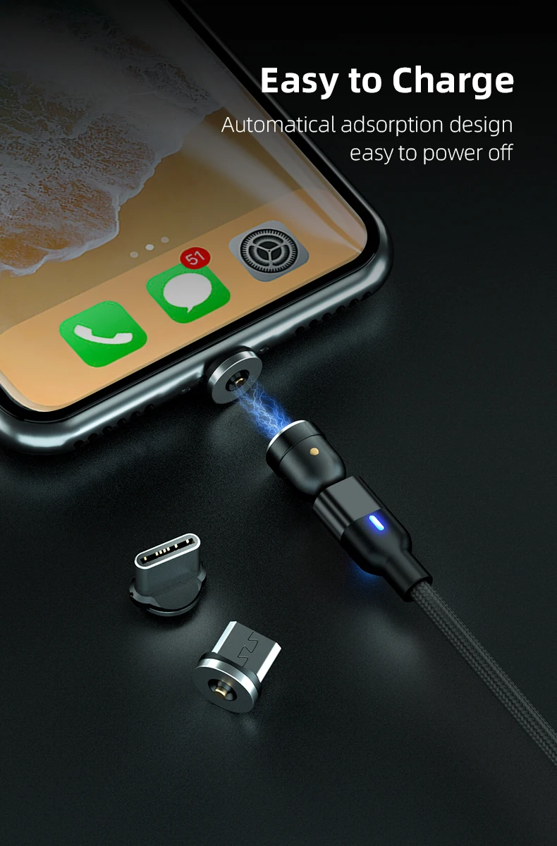 Магнитный USB-кабель 540 градусов для зарядки и передачи данных для...
