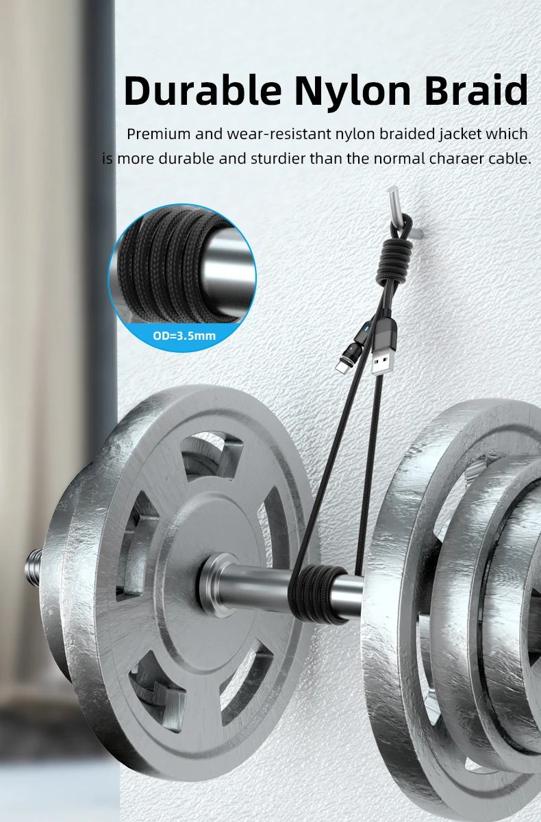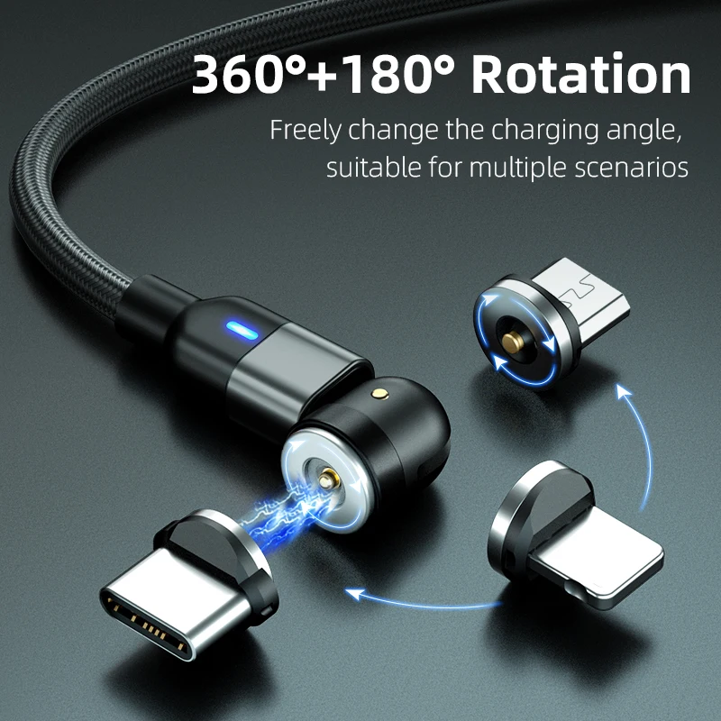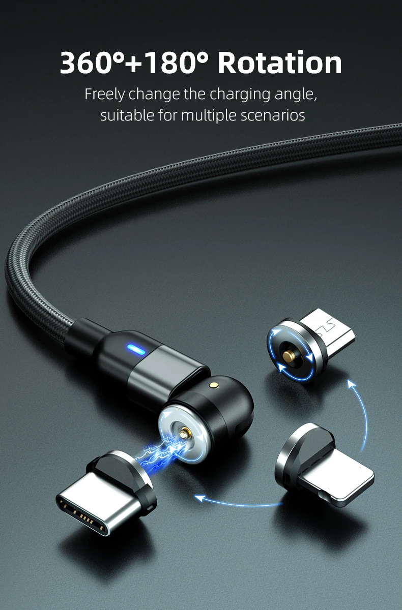 Вращающийся на 540 градусов Магнитный кабель зарядный шнур для теле...