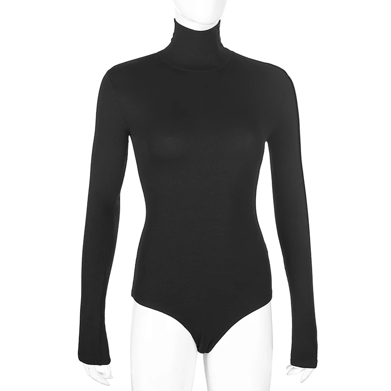 Боди женское осенне-зимнее однотонное с высоким воротником и длинны...