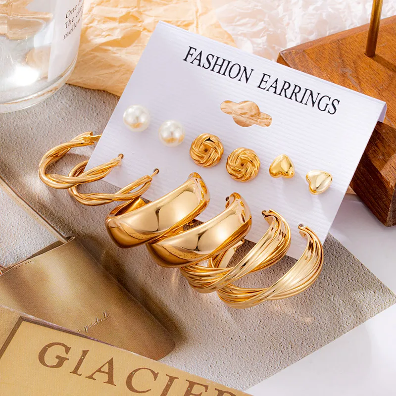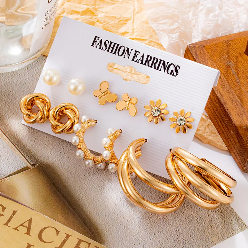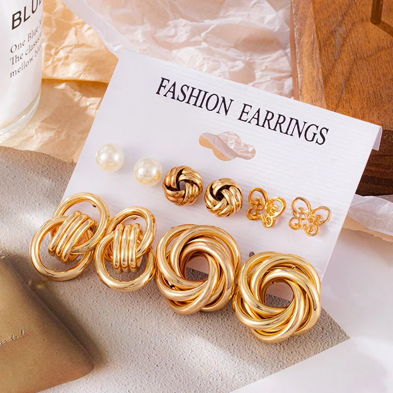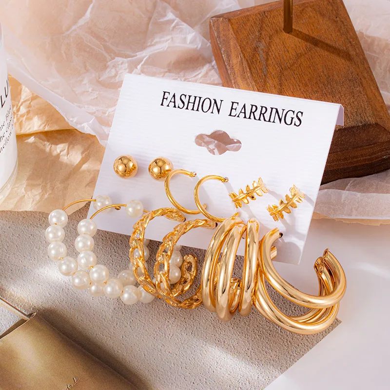 Винтажный геометрический Золотой металлический круг Комплект сережек для женщин панк жемчужный обруч висячие серьги 2021 Модные аксессуары ювелирные изделия