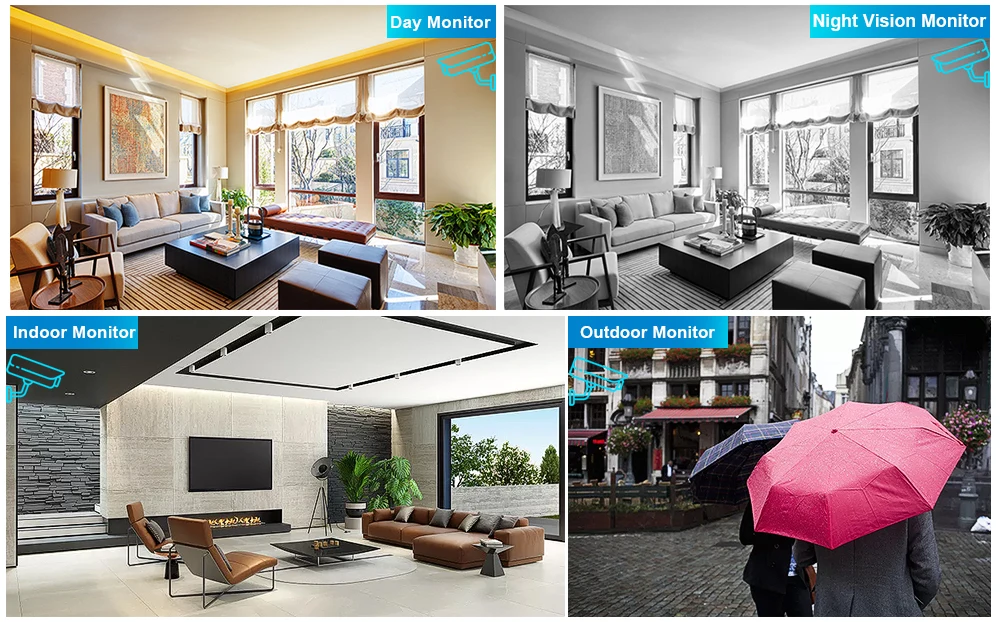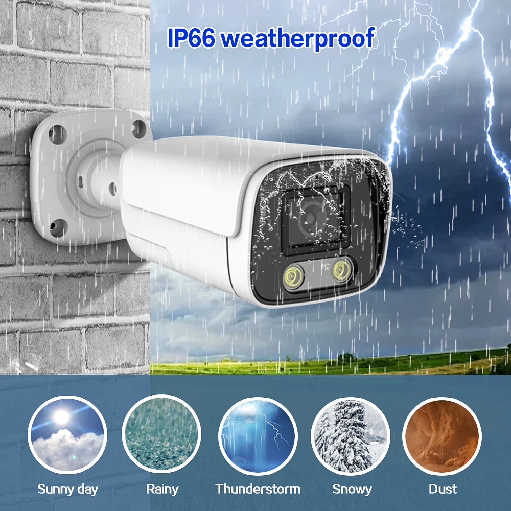 Используйте их в качестве наружных камер или крытых камер, так как они построены жестко, выдерживает любую погоду: дождь, снег, пыль и жаркие дни. С защитой от атмосферных воздействий IP66 и кабелями, просвечивающимися через подставку для защиты, гарантируем, что вы сможете ответить на их производительность, день в день. Наша камера имеет сверхпрочный металлический корпус, профессиональный IP66, устойчивый к атмосферным воздействиям, обеспечивая стабильную производительность как внутри, так и снаружи.