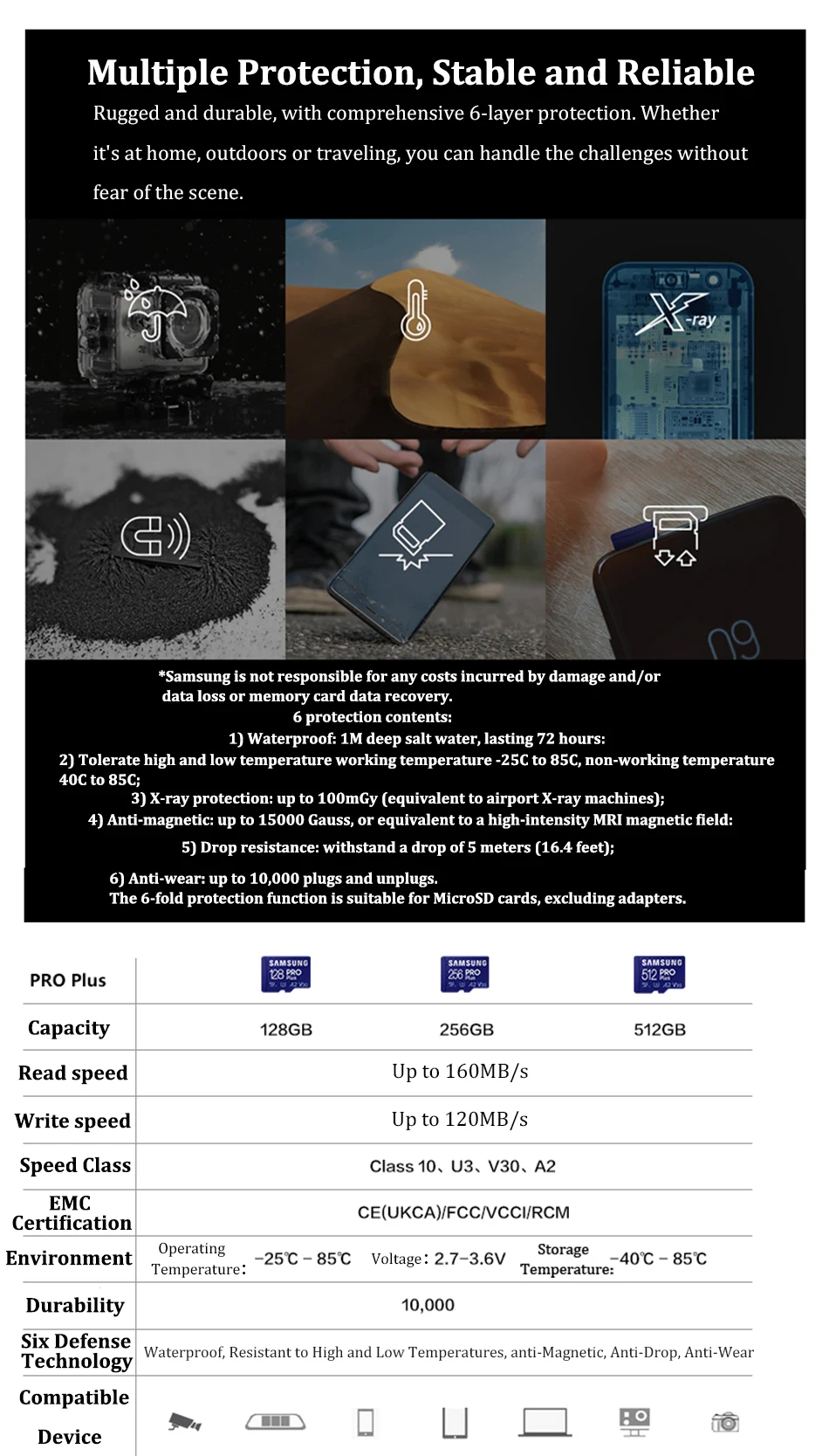 Выбор для динамичной жизни. Ультра-Быстрое письмо скорости и надежной производительности,Легко снимать с помощью мобильных телефонов или дронов 4K видео. Расширение хранилищаПространство, игровое оборудование 4K видео. Расширение пространства для хранения, игровое оборудование