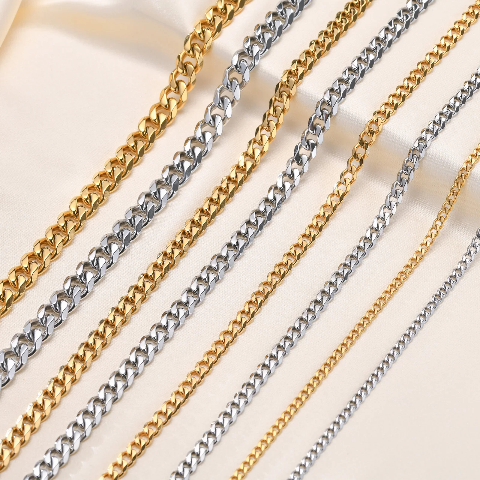 Женская Цепь Vnox, кубинская панцирная цепь Майами, плоская цепь в елочку, ожерелье из нержавеющей стали с цепочкой, цепочка с золотым оттенком
