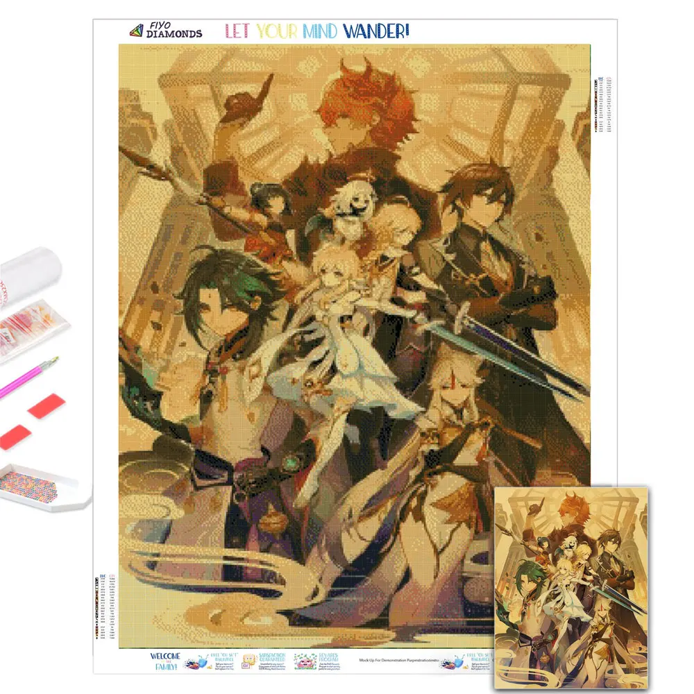 Genshin Impact 5D DIY алмазная живопись аниме искусство Вышивка крестиком наборы домашний декор геншин имитация т