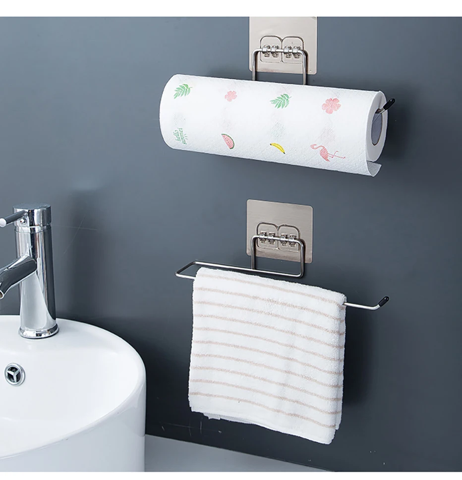 Самоклеящийся держатель рулона бумаги, подвесной держатель для бумаги, туалетной бумаги, упаковочная пленка, вешалка для полотенец, стойка для хранения шкафа, шкафа