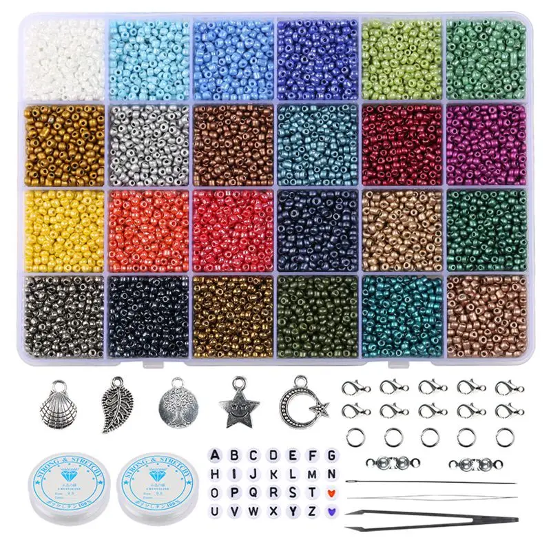 Набор коробок 3 мм стеклянный бисер с инструментами Алфавит бусины для изготовления ювелирных изделий браслет кольца DIY аксессуары ювелирный набор