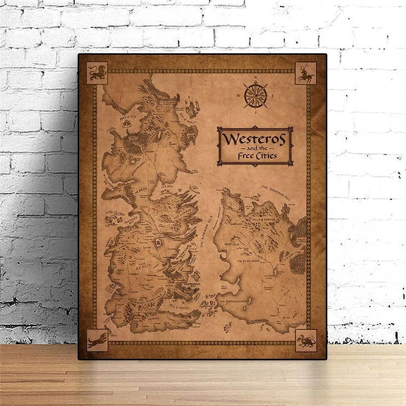 Ретро-игра оттенков семь царств карта искусства живопись Современная Настенная картина для гостиной домашний декор