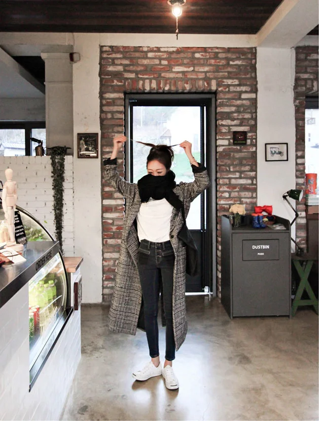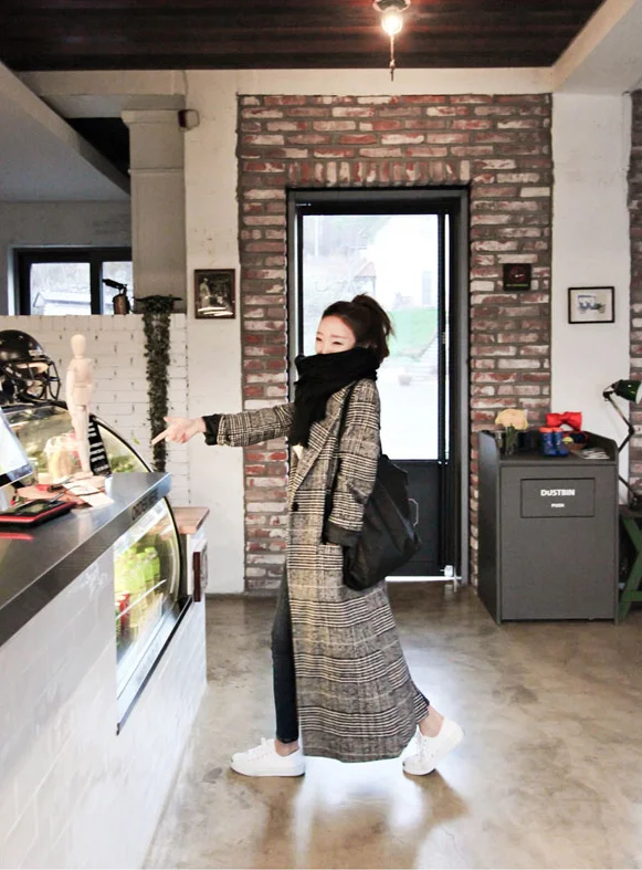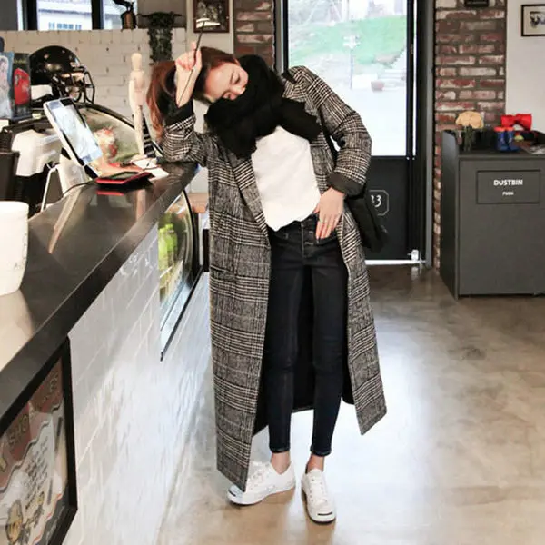 Осенне-зимний кашемировый Тренч, женское длинное повседневное клетч...