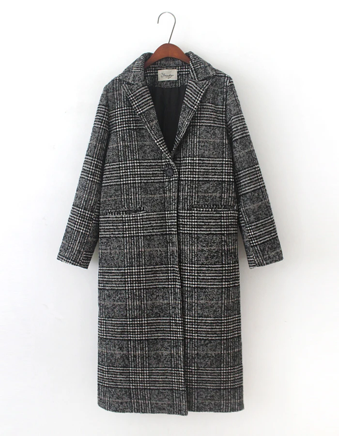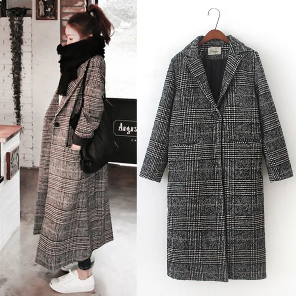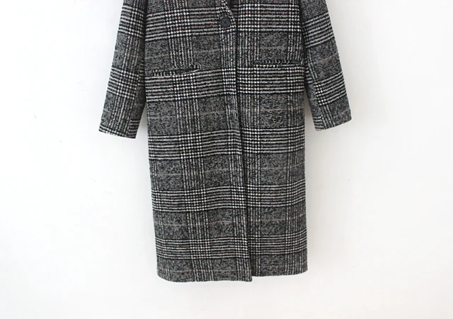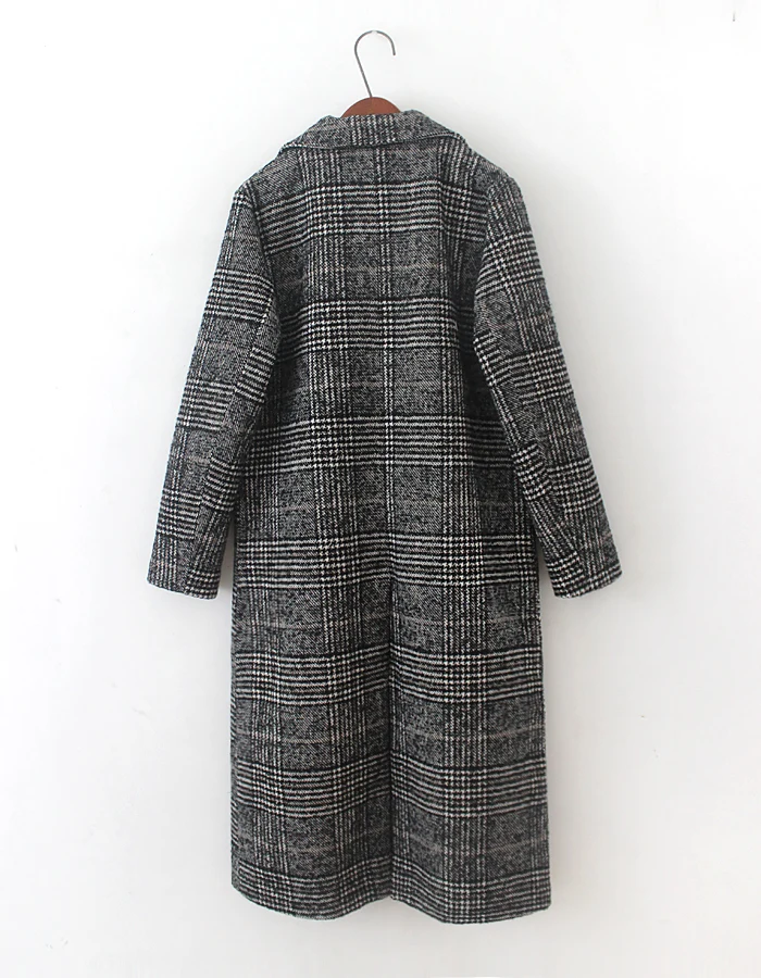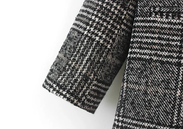 Женская зимняя одежда, плотное пальто, женская верхняя одежда в клетку с карманами и длинным рукавом из смешанной шерсти