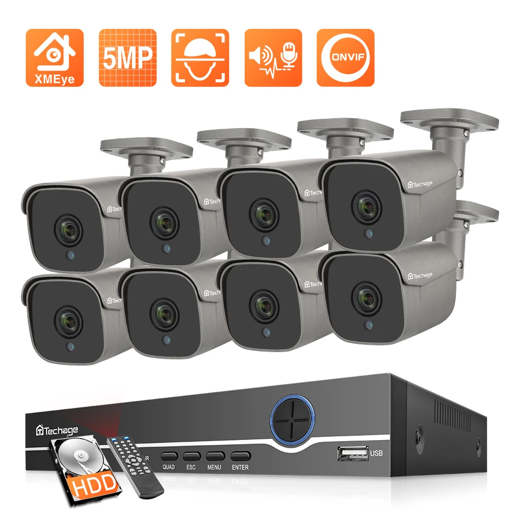 Techage H.265 8-канальная система видеонаблюдения 5.0MP наружная во...