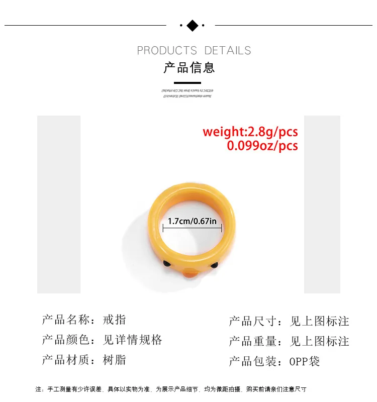Модное кольцо с лягушкой, милое кольцо, акриловое кольцо с цыпленком, женские Индивидуальные ювелирные изделия с животными, мужское кольцо дружбы на палец