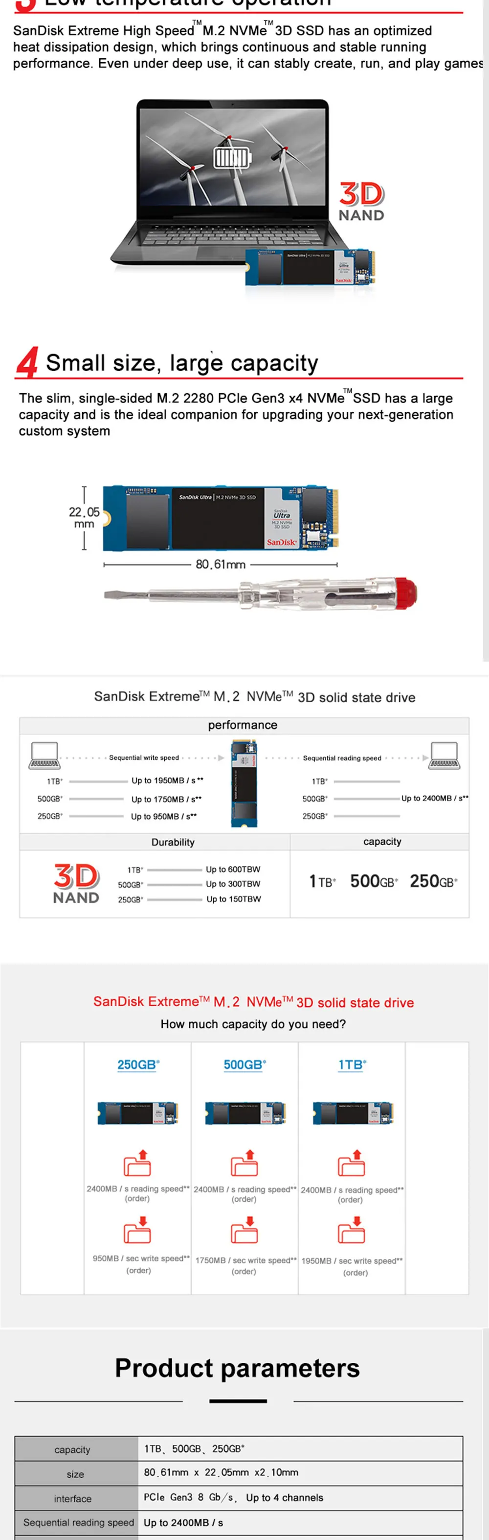 Жесткий диск SanDisk ULTRA M.2 NVMe 3D SSD 500 Гб SSD ТБ 250 ГБ внутренний Ssd M2 2 ТБ PCIe Gen 3,0x4 HDD для ноутбука и настольного компьютера
