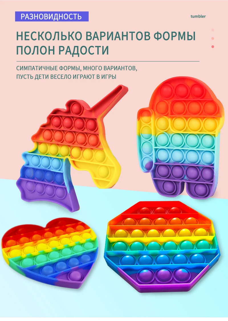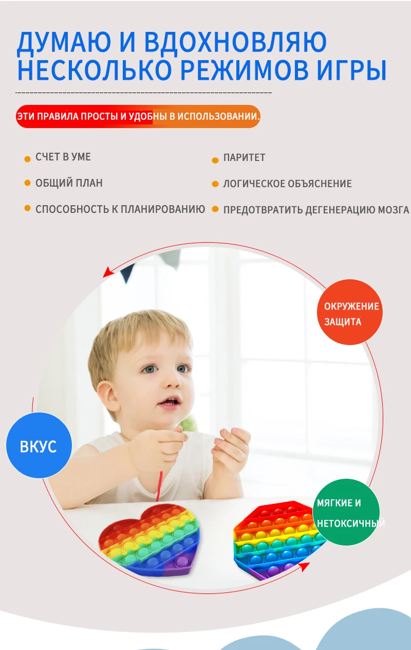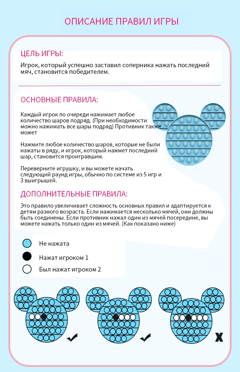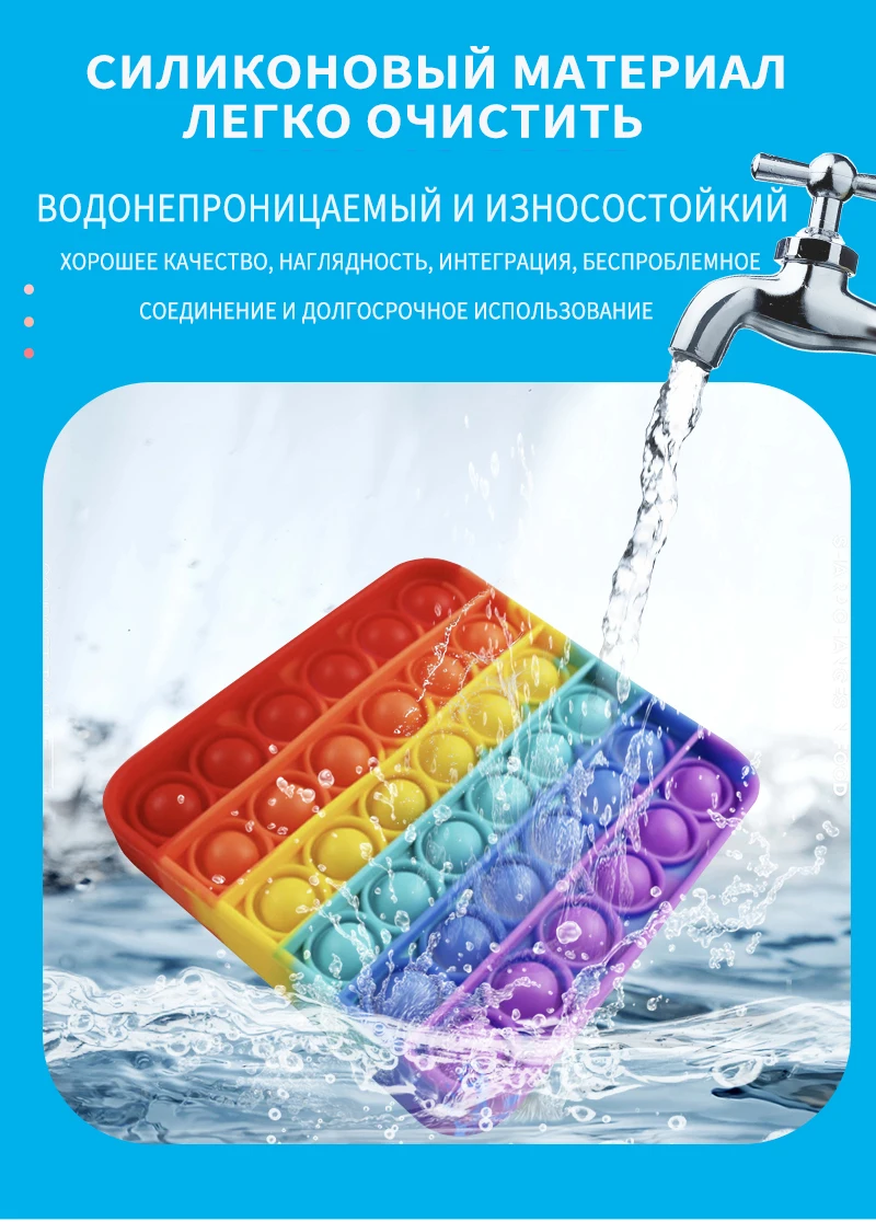 Ust надавите на пузыри мыши вниз, и они издадут легкий хлопок; затем переверните и начните снова! Бесконечно многоразовый и моющийся. Нетоксичный, безвкусный, не причинит вреда людям и домашним животным. Яркие цвета и приятные звуки обязательно понравятся любому ребенку!