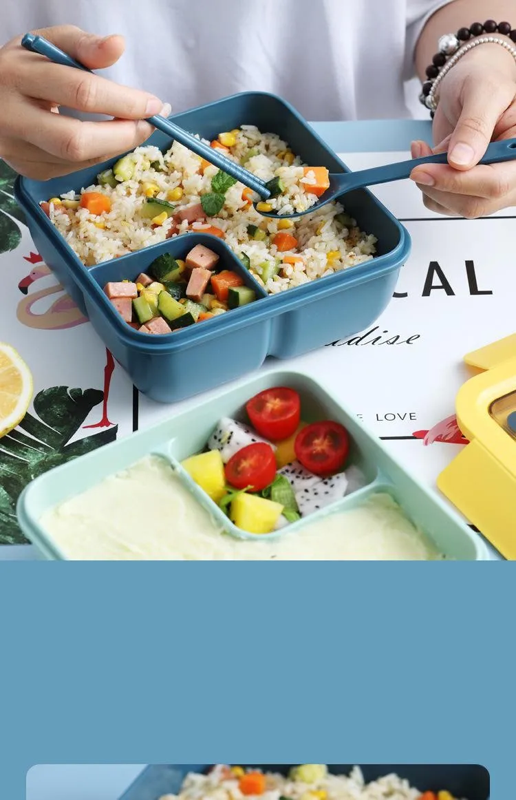 Ланч-бокс для студентов и офисных работников с посудой может подогреваться микроволновой печи