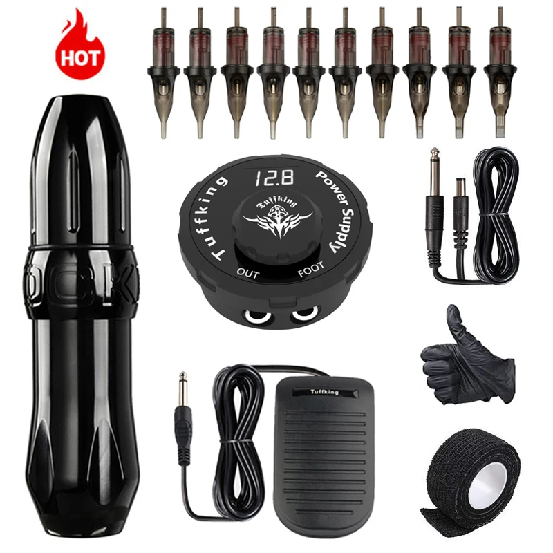 1 Вращающаяся ручка с кабелем постоянного тока1X источник питания с кабелем10X Картриджи иглы смешанные1 педаль1 бандаж для тату2X черные резиновые перчаткиОписание:В соответствии с использованием напряжения, регулировки для контроля интенсивности и частоты, сектант, туман, цвет, тотем портрета, новые и старые традиции, европейские и американские стили могут контролировать небольшие травмы, быстрая окраска