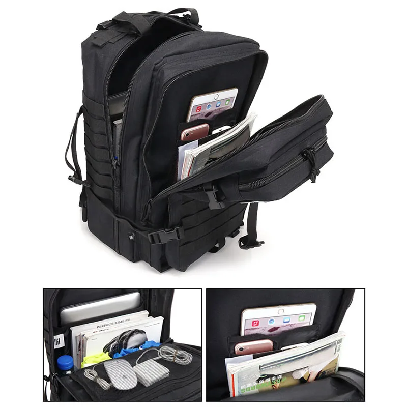 Тактический Рюкзак molle имеет систему molle, но MOLLE немного отличается от большинства тактических рюкзаков и не подходит для спецификации. Расстояние между моллом составляет менее 1/2"Тактический assualt рюкзак Размер прибл.: 11,8 "* 19,7" * 11,8 " /30*50*30 см (Ш * В * D), Ёмкость: 34-50LВоенный рюкзак изготовлен из ткани плотности 900D, прочный и водонепроницаемыйШтурмовая упаковка с двойной прострочкой, сверхмощными молниями и шнуром полезного стиля, системой сжатия боковой и передней нагрузки, удобной подкладкой задней части, вентилируемым сетчатым наплечным ремнем.Военный Рюкзак обладает гидратационной совместимостью, которая отлично подходит для гидратации мочевого пузыря 2,5 л (рюкзак не включает гидратационный пузырь) в качестве гидратационного рюкзака или походного рюкзака для кемпинга.Этот Тактический штурмовой рюкзак может использоваться как 3 дня штурмовой рюкзак, сумка, сумка-рюкзак, сумка-рюкзак, боевой рюкзак, ассортимент сумки, военный рюкзак, охотничий рюкзак, выживание рюкзак, рюкзак в стиле милитари рюкзак или трекинговый рюкзак спортивная сумка для отдыха на природе.