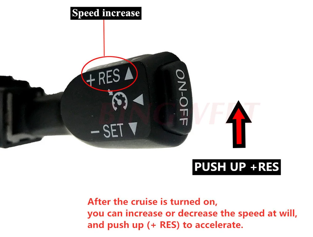 1. Открытие круиза: при нормальных упражнениях (скорость более 40 км) сначала нажмите кнопку ВКЛ-ВЫКЛ на верхней части круизной ручки, зеленый Круизный светильник поднимается, затем ручка перемещается вниз (-установленное направление), правая нога ослабляет педаль акселератора, и начинается курсирование. После открытия круиза, вы можете добавить и Сбросить скорость по желанию (push + RES для ускорения) (набор циферблата для замедления).