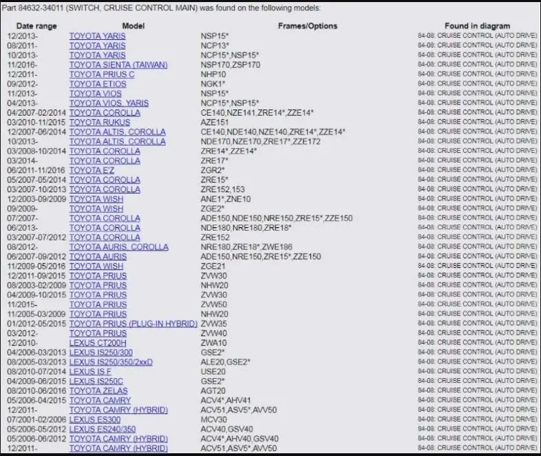 Название Модели84632-34011 84632-34017 84632-0F010